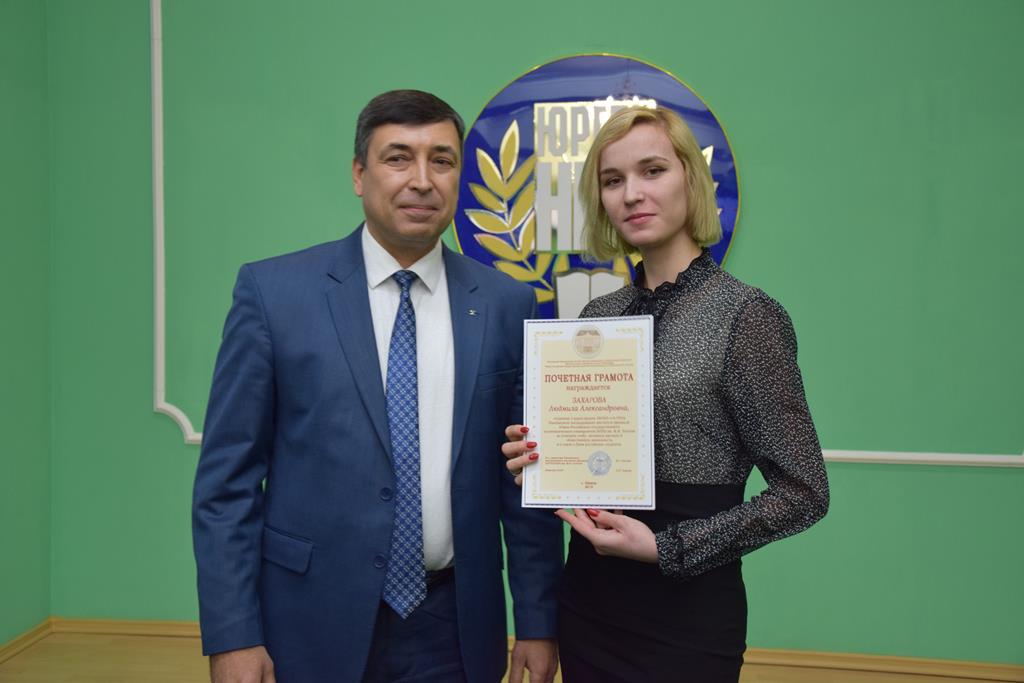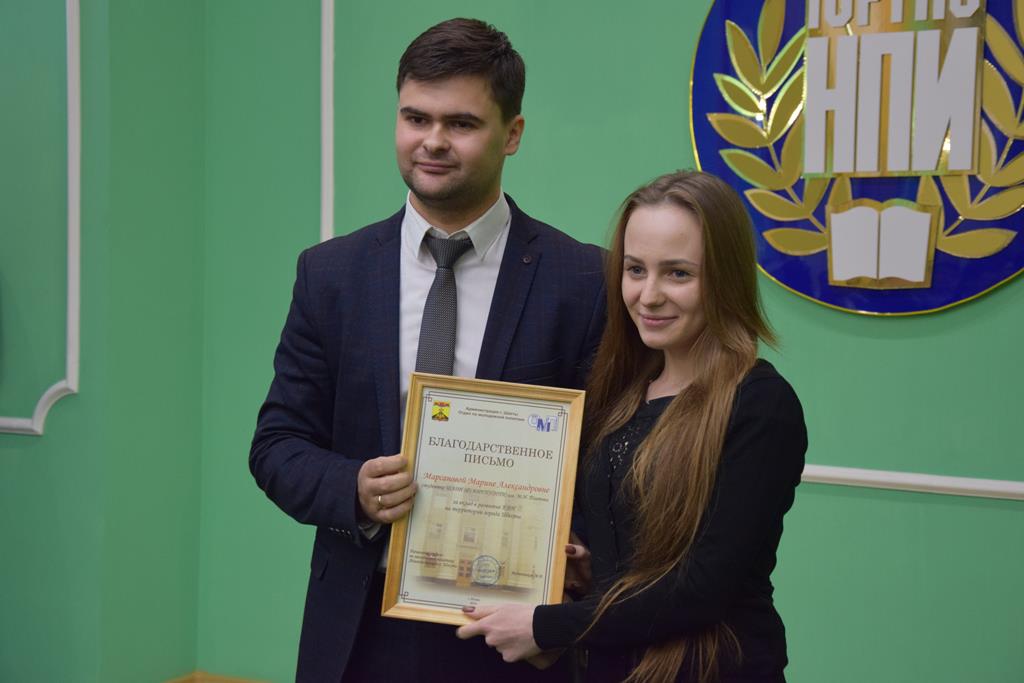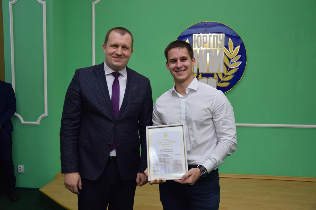 Благодарственными письмами городской Думы города Шахты за активное участие в жизни института и города, развитие студенческого самоуправления и в связи с днем российского студенчества награждены Манетова Евгения Сергеевна и Евсюкова Алина Анатольевна.