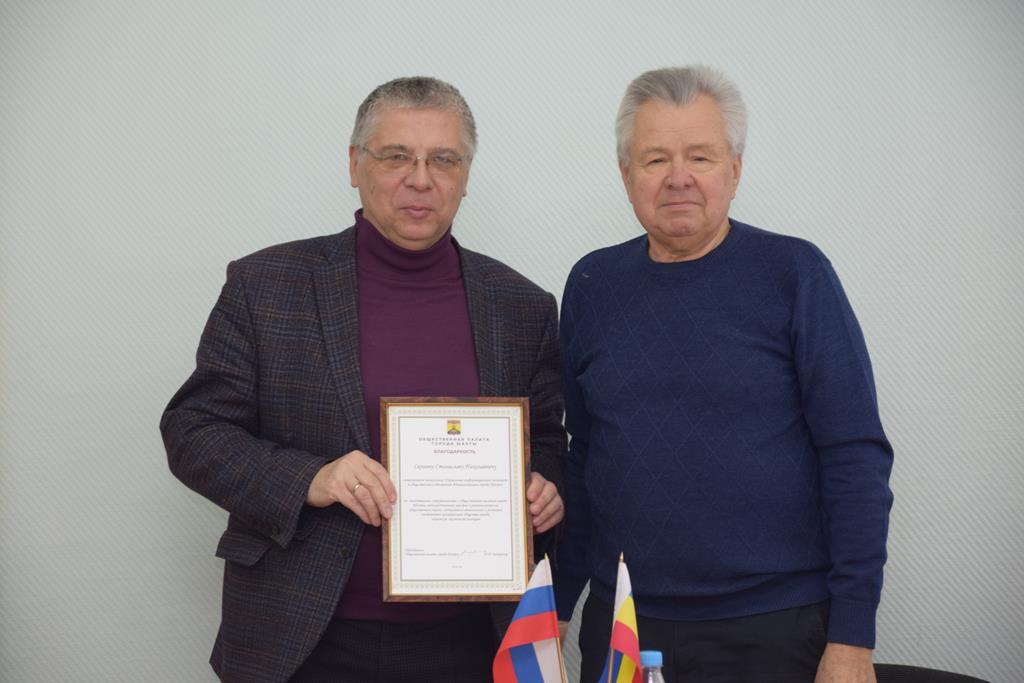 Третьим вопросом члены Совета Общественной палаты приняли решение и наградили благодарностью Общественной палаты Сергеева С.Н. – заместителя начальника Управления информационной политике и общественных отношений Администрации города Шахты за плодотворное сотрудничество с Общественной палатой города Шахты, непосредственное участие в решении вопросов общественной жизни, содействие в становлении и развитии институтов гражданского общества города, активную жизненную позицию.