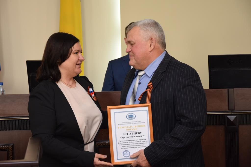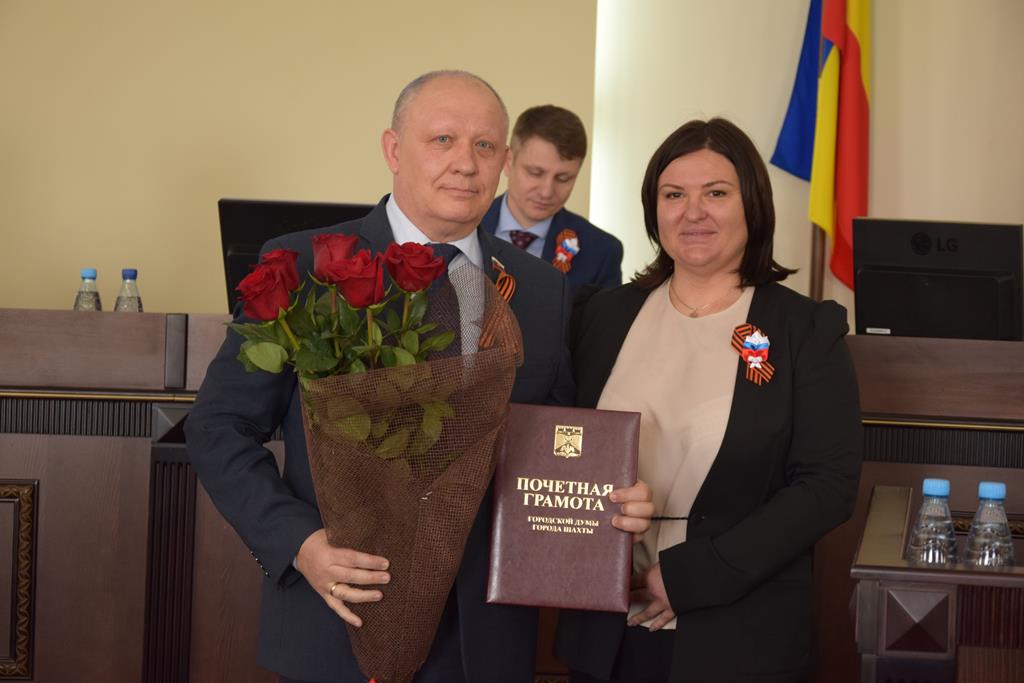 Перед рассмотрением основной повестки дня председатель комитета Законодательного Собрания Ростовской области по взаимодействию с общественными объединениями, молодежной политике, физической культуре, спорту и туризму Е.П. Стенякина вручила Почетную грамоту Законодательного Собрания Ростовской области директору ГБОУ ДОД РО «Специализированная детско-юношеская спортивная школа олимпийского резерва №15 им. В.И. Алексеева» Г. В. Бессонову. Председатель городской Думы – глава города Шахты Ирина Жукова вручила Почетную грамоту городской Думы города Шахты председателю комитета по ЖКХ, депутату городской Думы города Шахты по округу №21 А.В. Скорикову и Благодарственное письмо депутата Государственной Думы ФС РФ М.И Щаблыкина депутату городской Думы города Шахты по округу №11 С.Н. Беззубцеву.