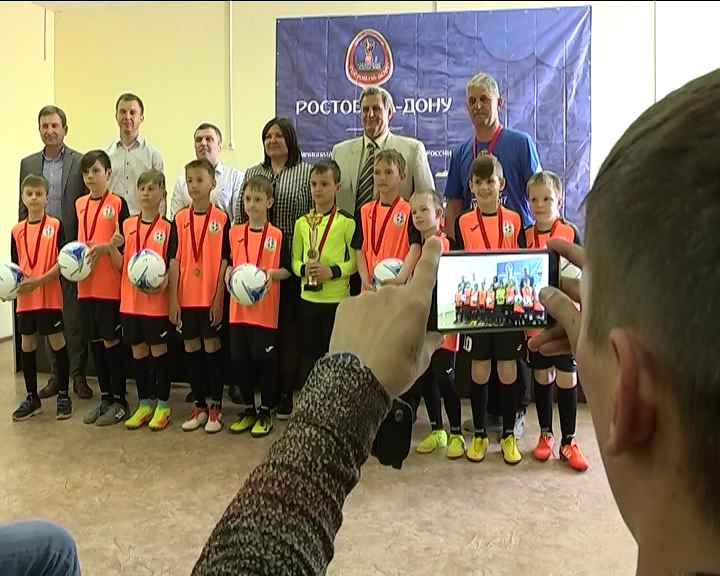 Председатель городской Думы — глава города Шахты И.А.Жукова вручила золотые медали футболистам и кубок первенства команде победителей.