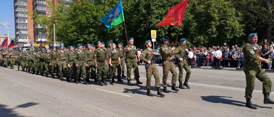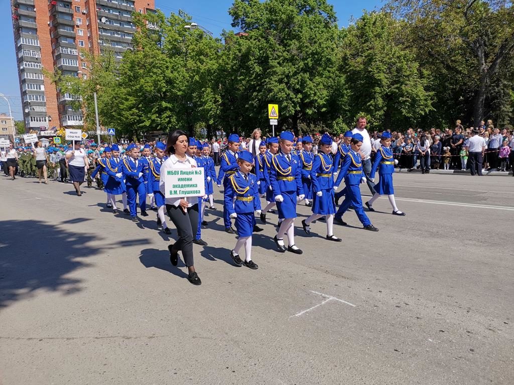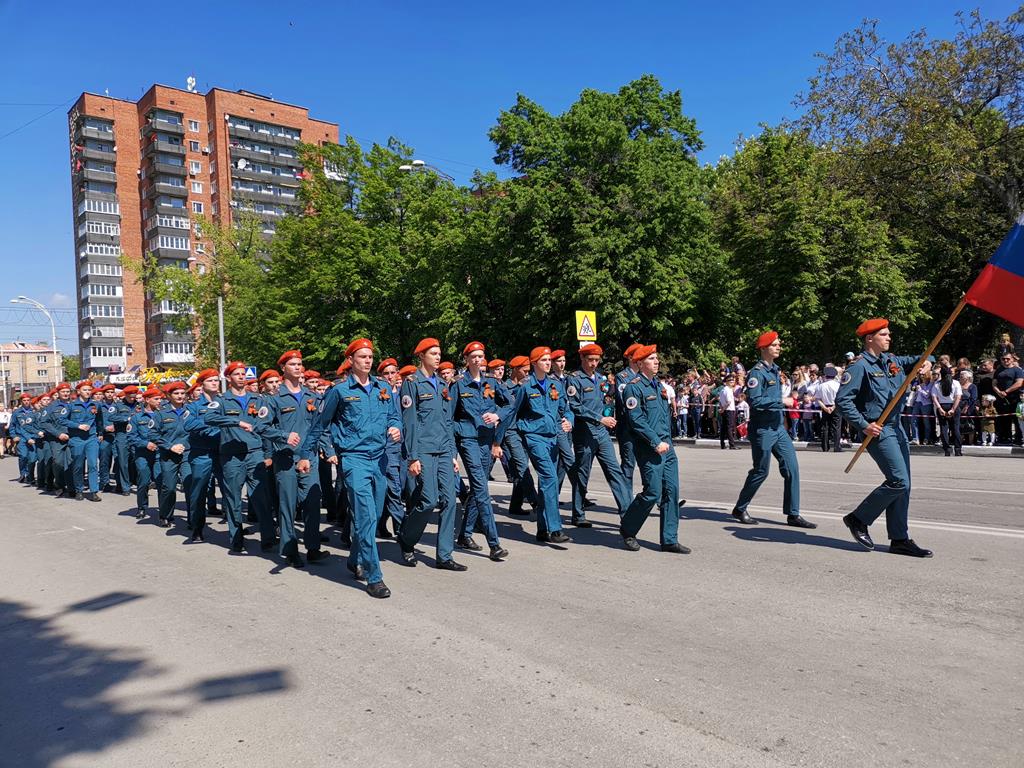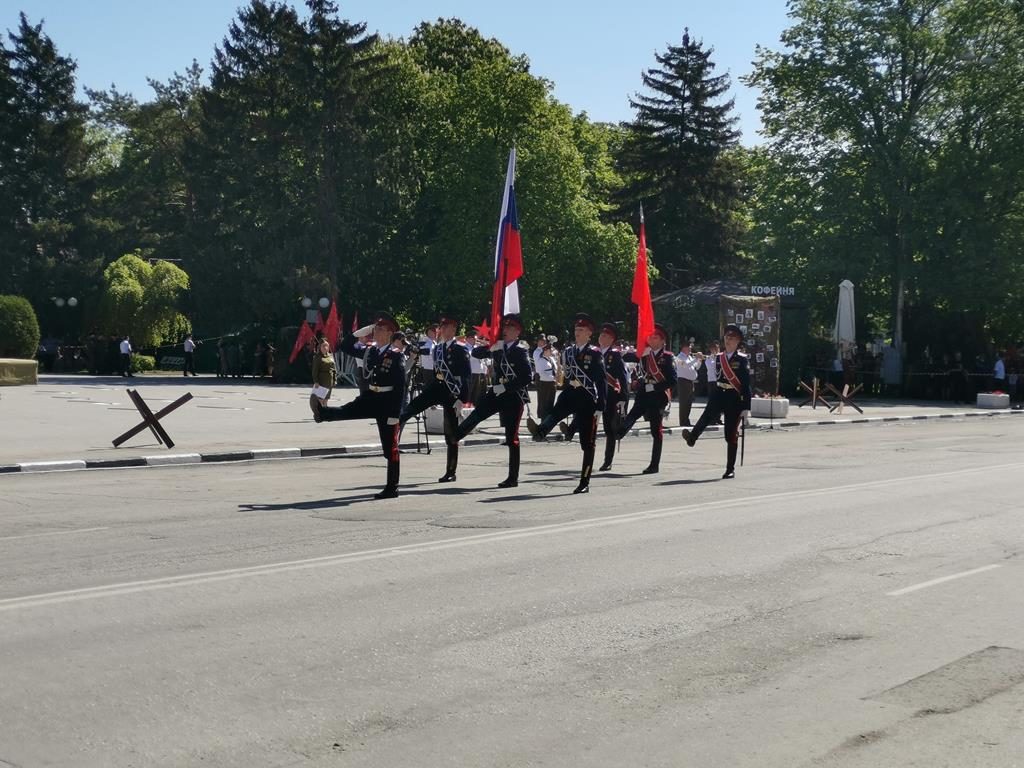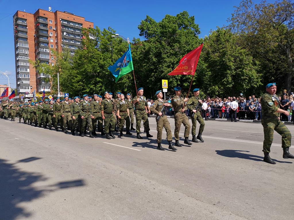 Стройными рядами мимо главной трибуны прошли воспитанники Шахтинского казачьего кадетского корпуса им. Я.П.Бакланова, участники боевых действий в Афганистане и военных конфликтах на Северном Кавказе, учащиеся образовательных организаций, участники игры «Отвага», члены военно-патриотического общественного движения «Юнармия».