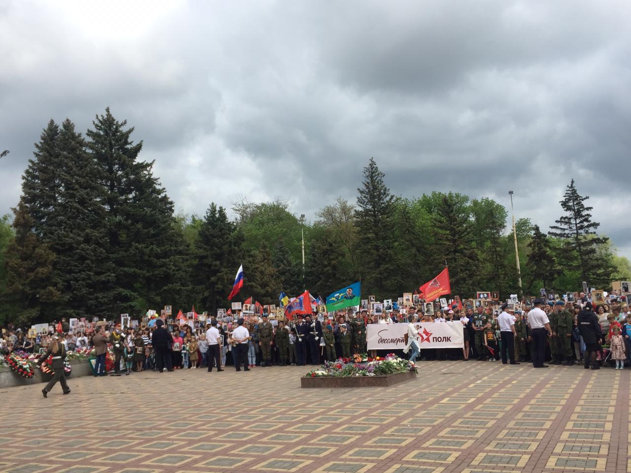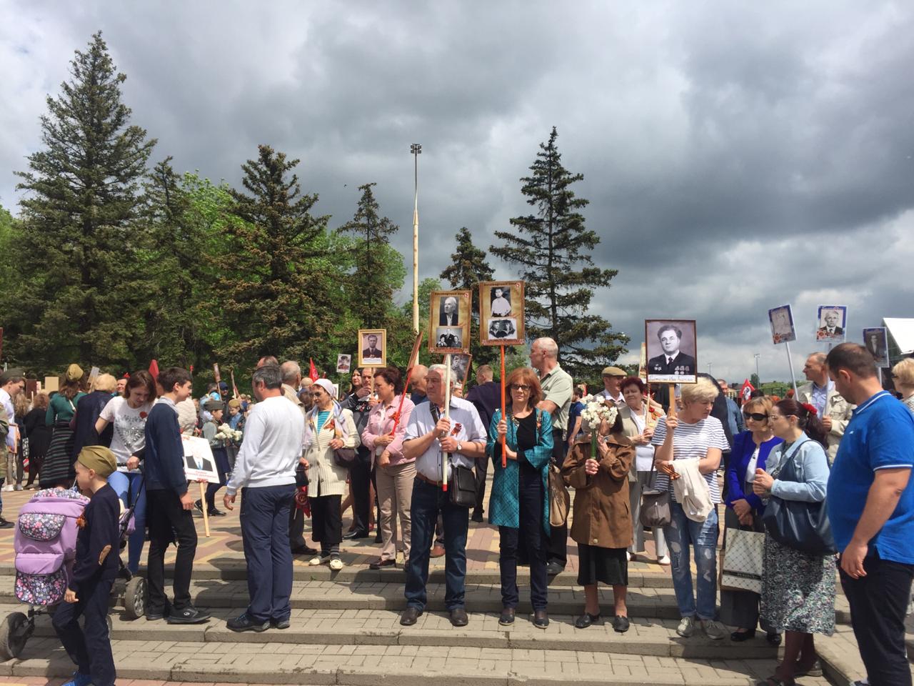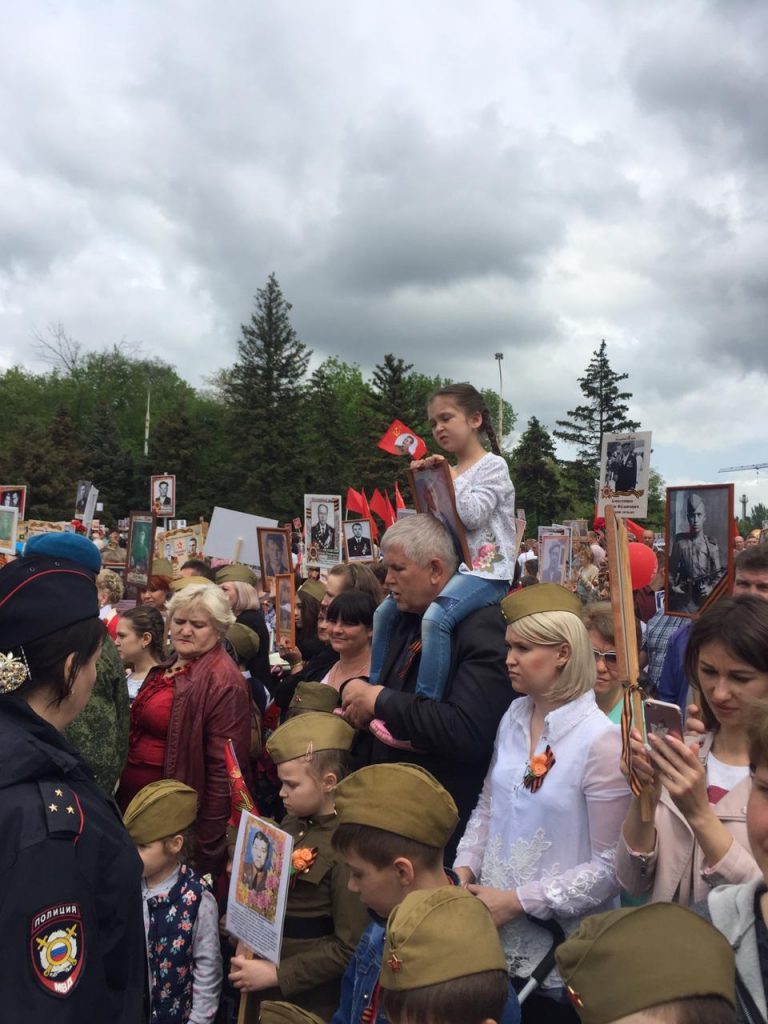 9 мая на улице Советской около площади Ленина к 12 часам дня собрались тысячи шахтинцев с портретами своих предков — ветеранов и участников Великой Отечественной войны, тружеников тыла, жертв войны. И торжественный строй Бессмертного полка пошёл по городу!