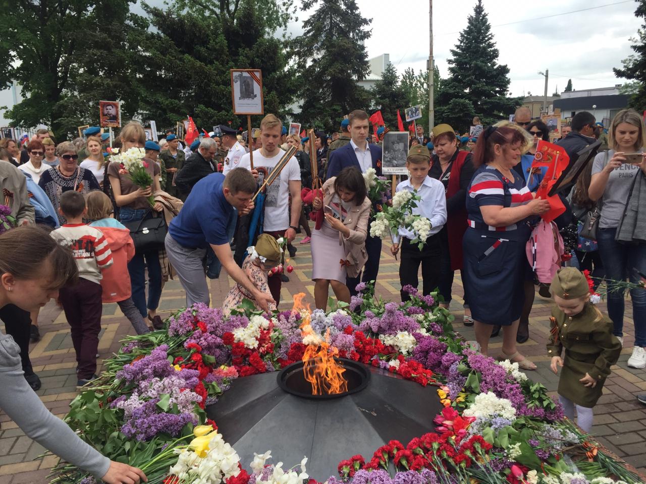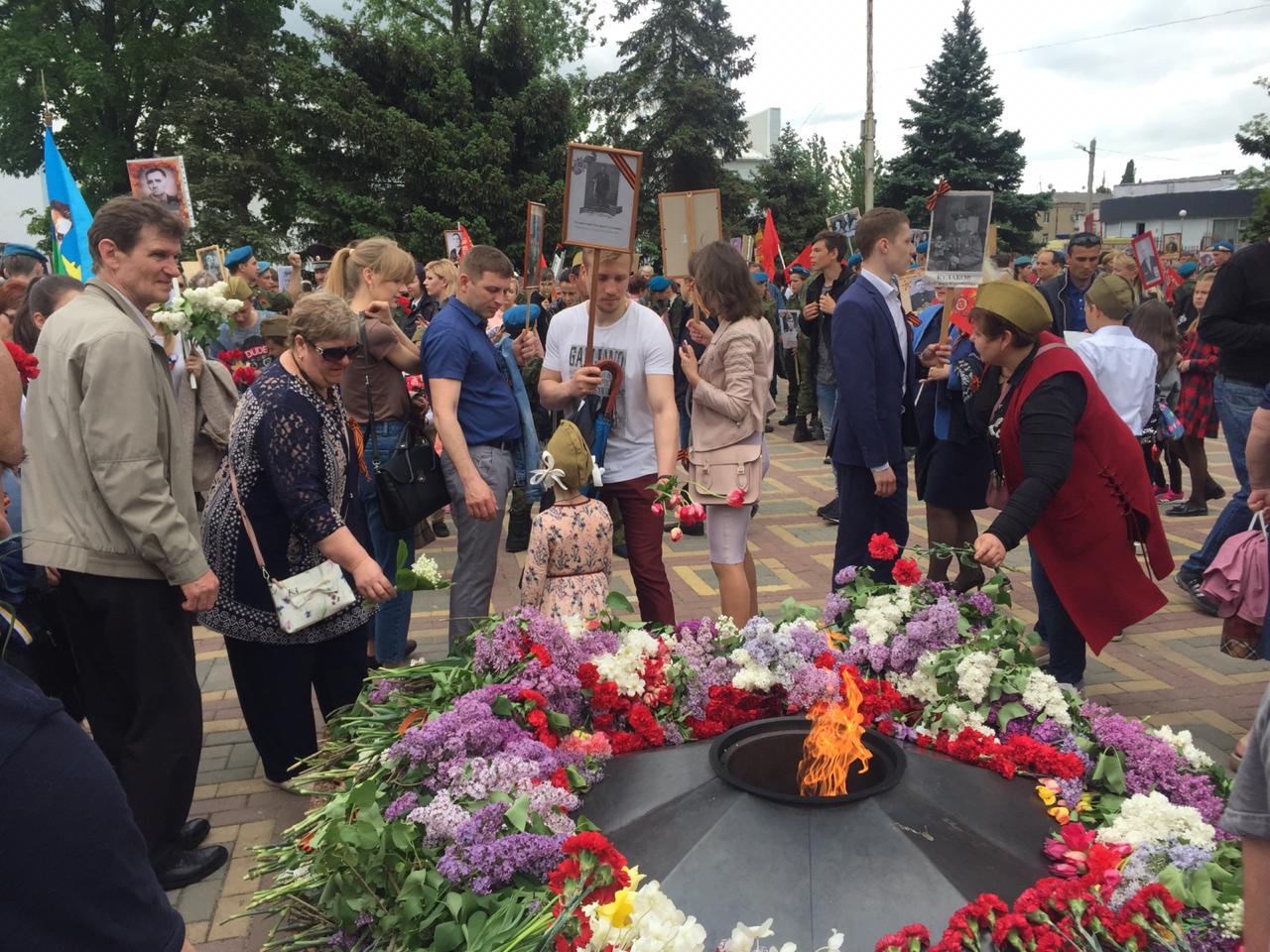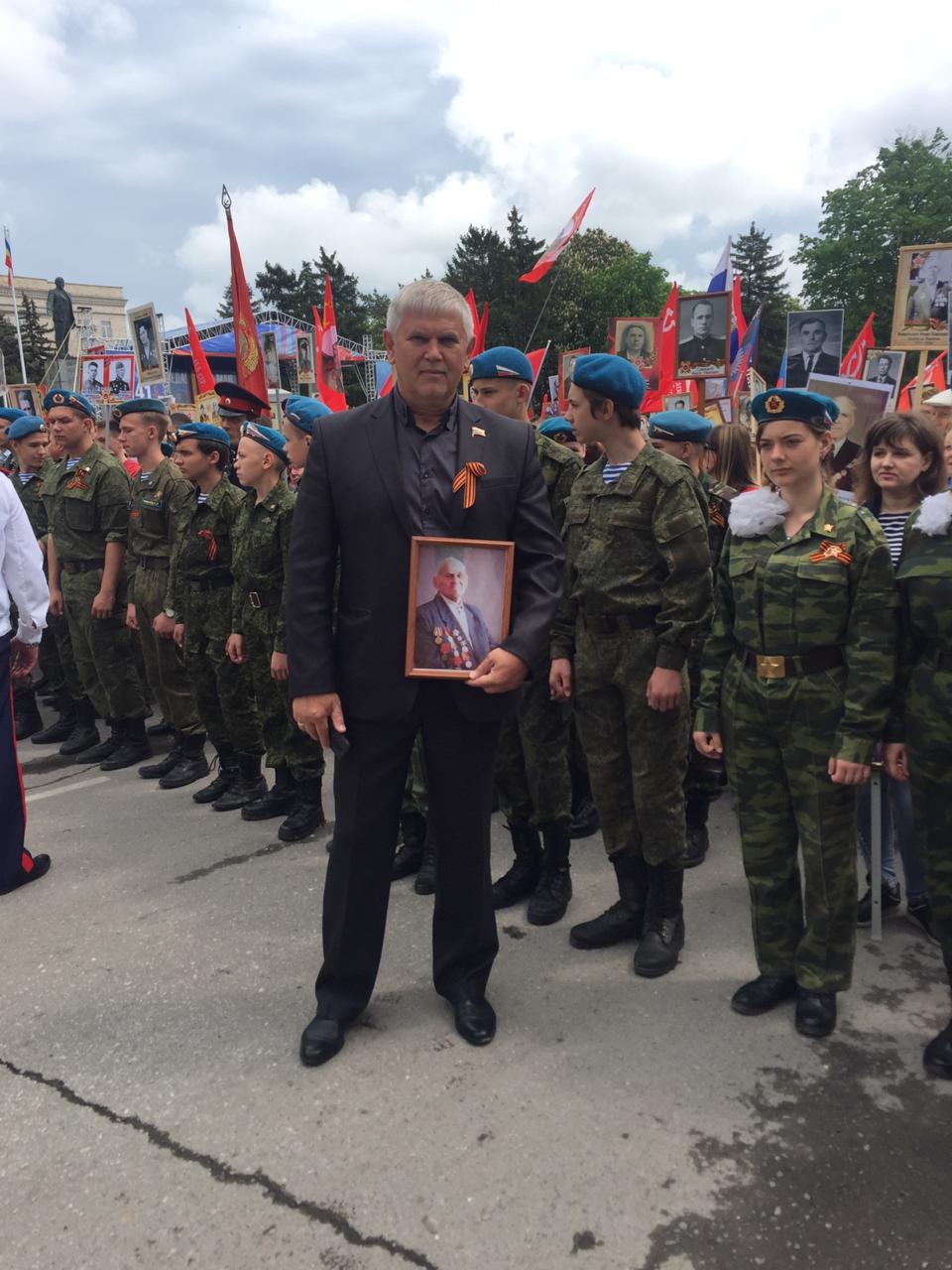 9 мая на улице Советской около площади Ленина к 12 часам дня собрались тысячи шахтинцев с портретами своих предков — ветеранов и участников Великой Отечественной войны, тружеников тыла, жертв войны. И торжественный строй Бессмертного полка пошёл по городу!