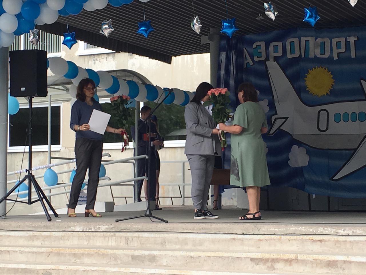 Выпускники пели песни, танцевали, читали стихи, дарили цветы учителям. Вот и прозвенел для них «последний звонок», хотя впереди ещё очень ответственная пора — сдача ЕГЭ. Всем удачи, ребята!