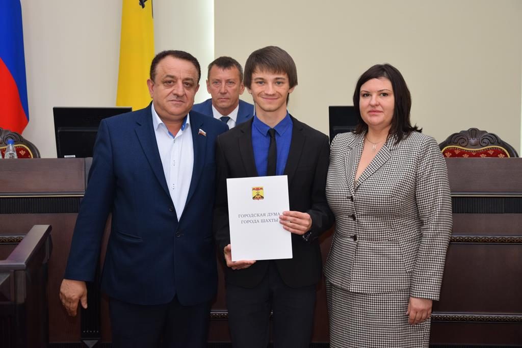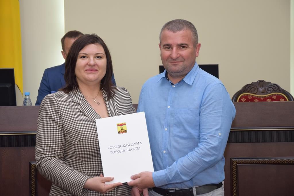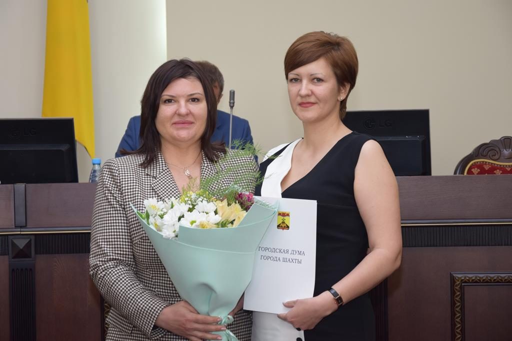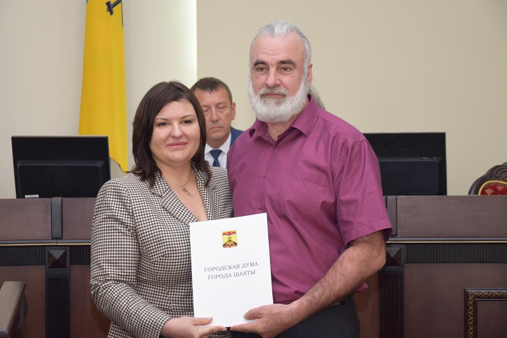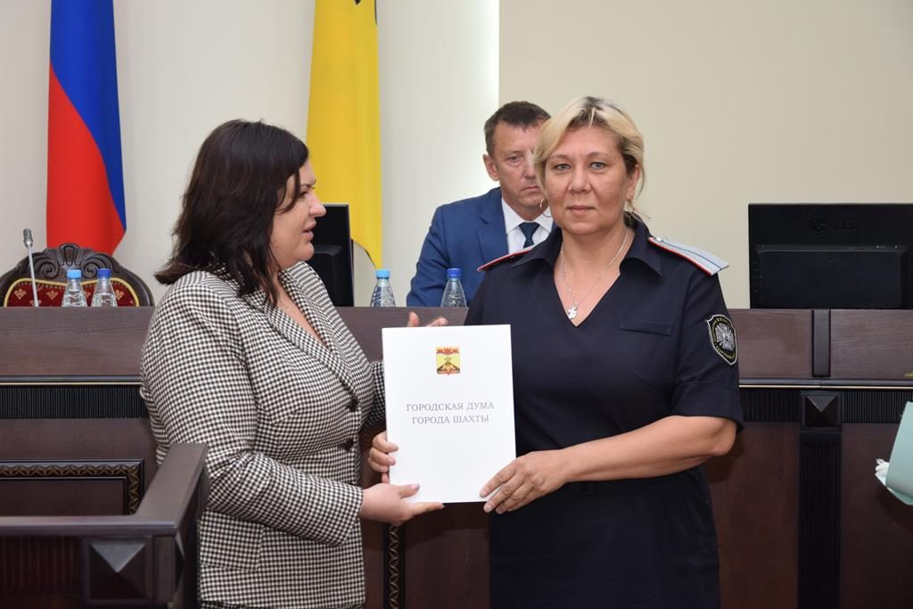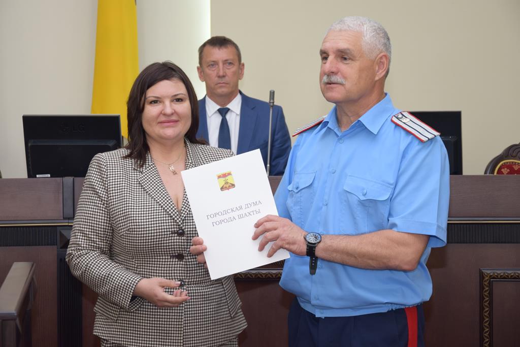 Перед рассмотрением основной повестки дня председатель городской Думы — глава города Шахты И.А.Жукова вручила Благодарственные письма городской Думы Виталию Александровичу Бобыльченко директору Шахтинского Я.П.Бакланова казачьего кадетского корпуса, Ирине Геннадьевне Чертовов заместителю директора по учебно-воспитательной работе казачьего кадетского корпуса им.Я.П.Бакланова,Котляровой Ирине Викторовне главному бухгалтеру хлебопекарного предприятия «Аютинский хлеб» ИП Гуковской М.Ю., Козлову Николаю Николаевичу начальнику транспортного участка хлебопекарного предприятия «Аютинский хлеб» ИП Гуковский А.А., Сопневу Юрию Анатольевичу начальнику участка экспедиции хлебопекарного предприятия «Аютинский хлеб» ИП Гуковской М.Ю., Ткачеву Андрею Борисовичу руководителю театрально-культурного центра имени А.Ткачева.