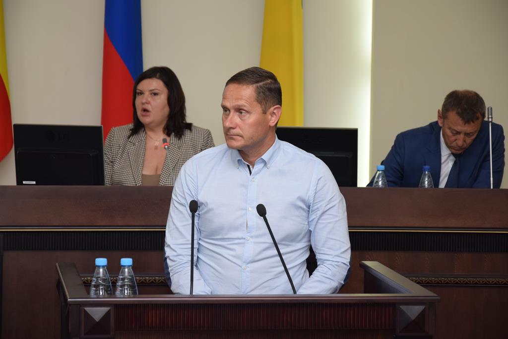 Седьмой вопрос — Об утверждении перечня имущества, предлагаемого к передаче из государственной собственности Ростовской области в муниципальную собственность муниципального образования «Город Шахты», докладчик председатель КУИ г. Шахты А.Г. Юрьев.