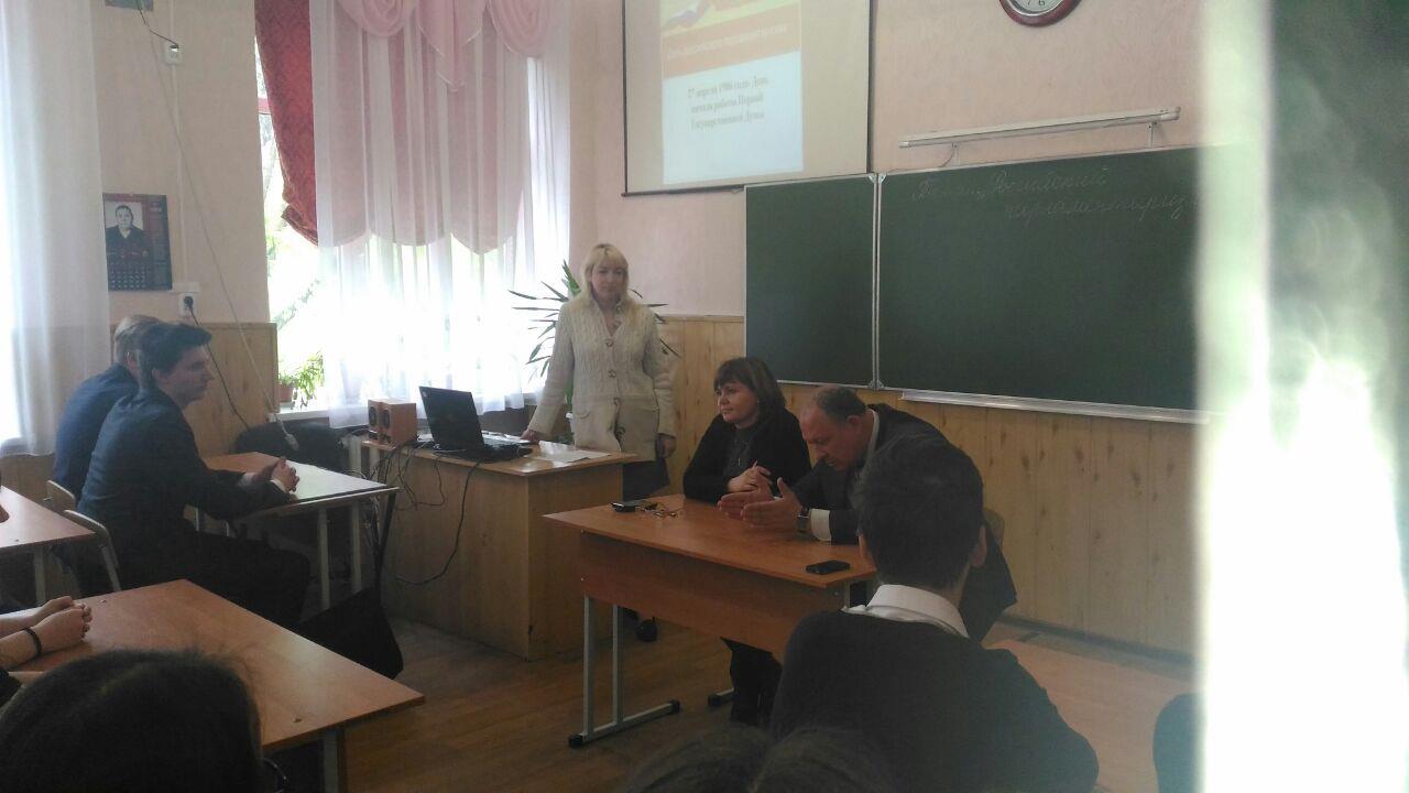 Депутат городской Думы по избирательному округу № 21 Александр Викторович Скориков принял участие в проведении открытых уроков в классах лицея №26 по теме истории и становления парламентаризма в России и на Дону.