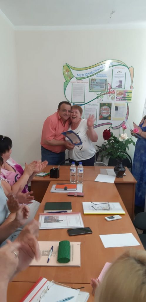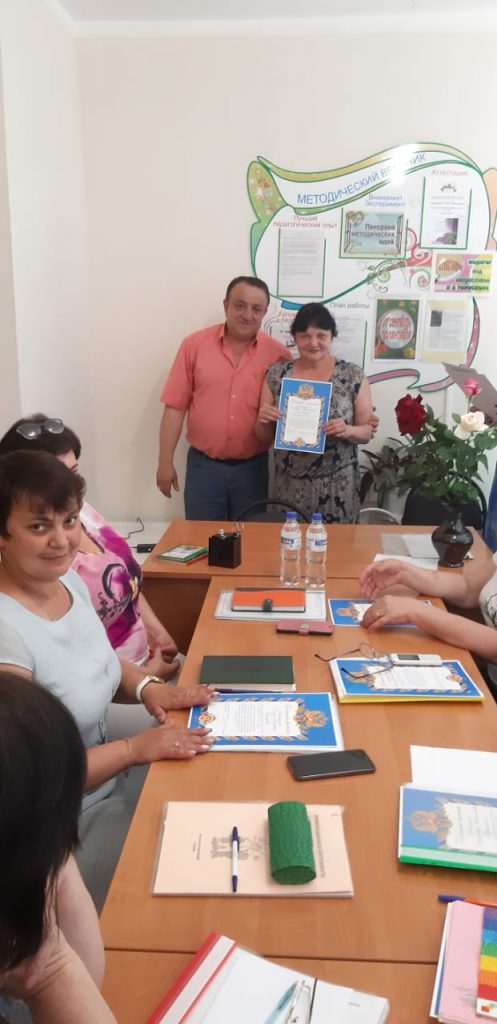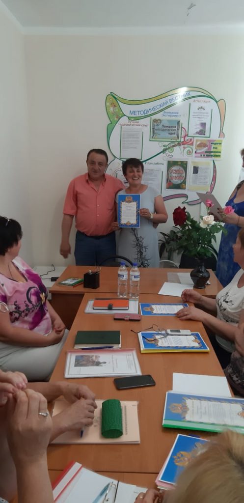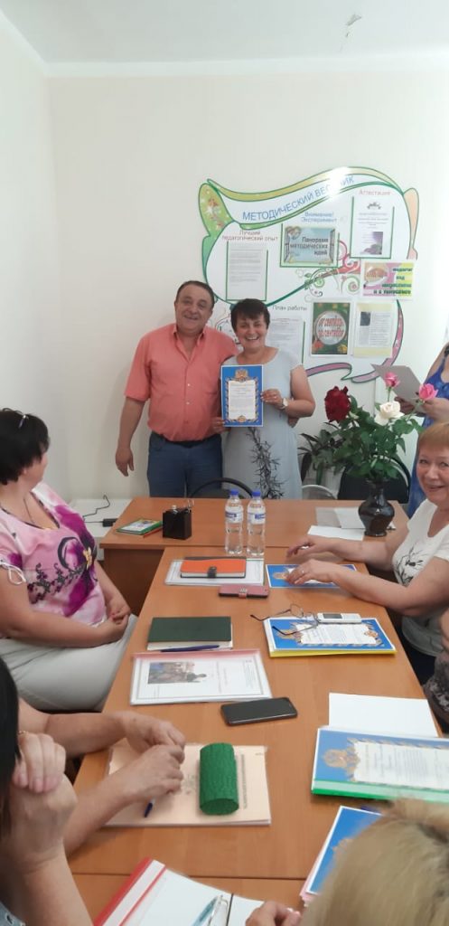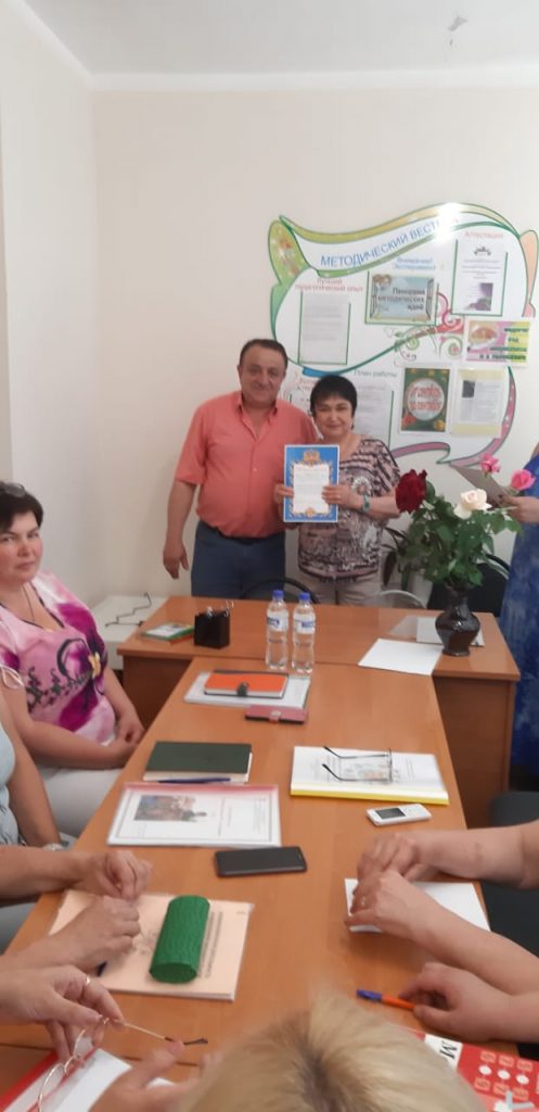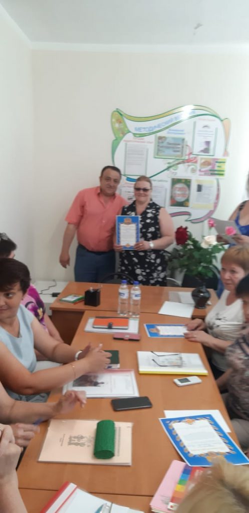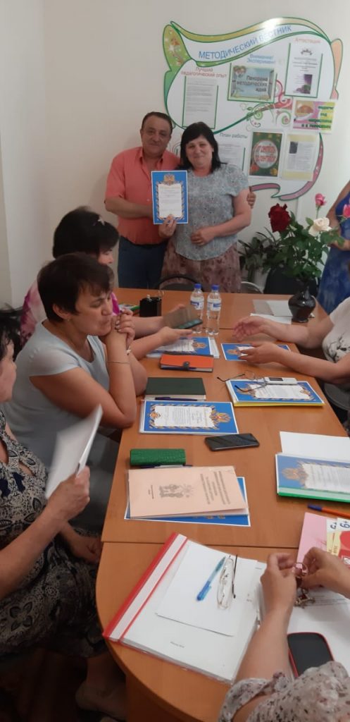 «Сердце отдаю детям» эти слова известного педагога В.А. Сухомлинского может повторить каждый педагог, каждый сотрудник муниципального детского сада 75, что в посёлке Фрунзе. Жители этого поселка (избирательный округ №3) славятся своей сплочённостью, своим умением вместе хорошо трудиться и весело отдыхать, решать актуальные вопросы благоустройства и поддерживать добрые инициативы своего депутата О.Н.Данилова и Совета округа. Во многом это заслуга коллектива детского садика: самые юные жители округа вместе с воспитателями, родителями и бабушками с дедушками-неизменные участники всех добрых дел округа. Даже самые младшие воспитанники садика знают и понимают, что город Шахты и посёлок Фрунзе-наш общий дом и учатся заботливому отношению ко всему,что их окружает. Этот учебный год стал для коллектива садика, которым руководит кандидат педагогических наук, Почетный работник общего образования Российской Федерации Н.В. Падашуль стал знаменательным: впервые в истории педагогического сообщества нашего города Ростовский институт повышения квалификации работников образования издал сборник статей педагогов этого учреждения, распространив и обобщив опыт педагогов, психолога и музыкального работника этого творческого, дружного коллектива. На педсовете, посвящённом итогам учебного года, педагоги не только анализировали успехи своих воспитанников, актуальные вопросы социализации детворы, но и наметили планы на будущее. В работе педсовета и обсуждении всех поднятых вопросов принял участие добрый друг этого коллектива-депутат городской Думы О.Н.Данилов. Олег Николаевич поблагодарил педагогов за их вдохновенный труд и отметил Почетными грамотами Н.В.Падашуль, А.К.Мазину, Г.Б.Бойко, А.В.Орлову, А.А.Прокопенко, И.В.Солманову, Е.Ю.Гончарову, Н.В.Лигута, И.В.Сорокину, Е.А.Кондратьеву.