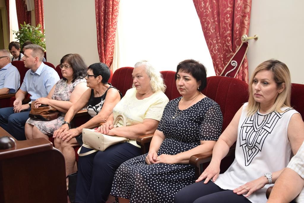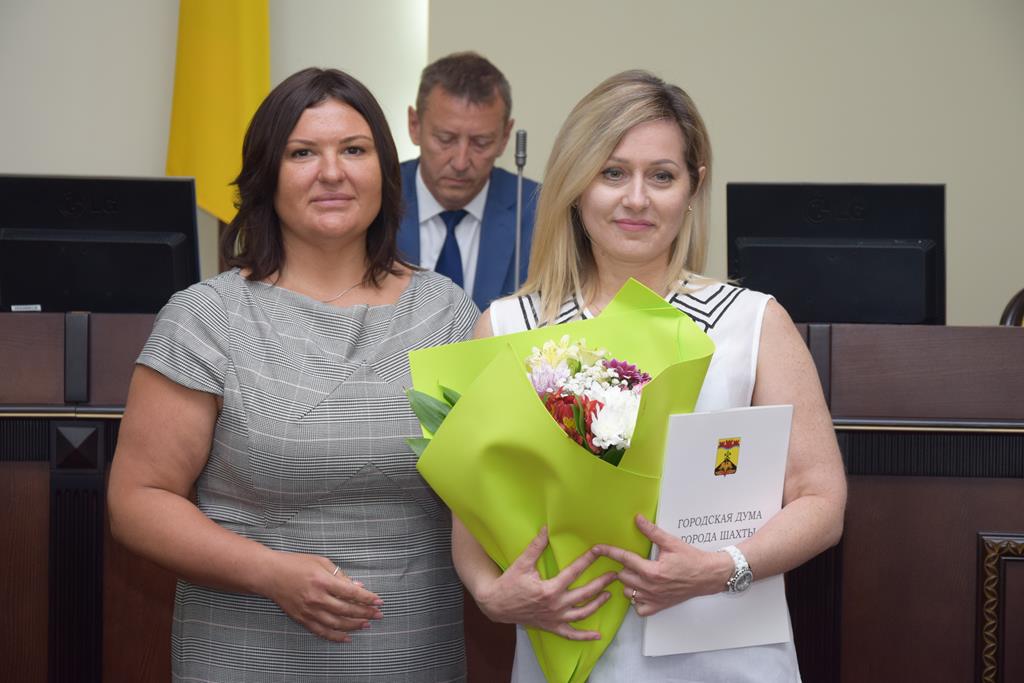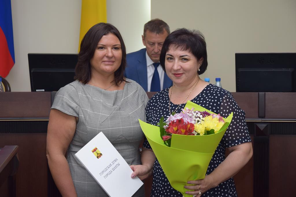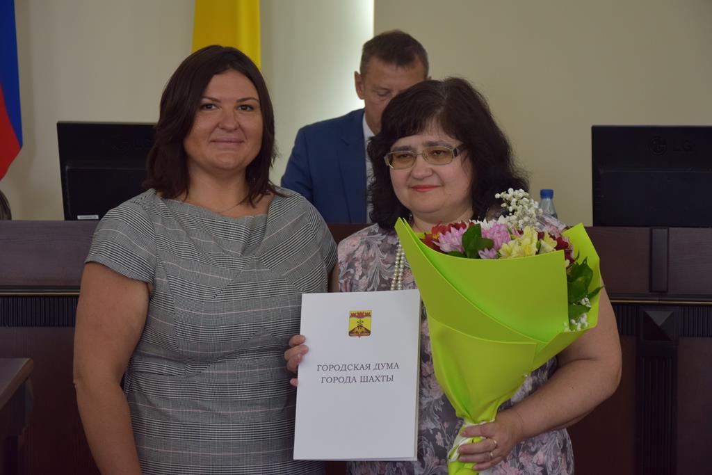 Перед рассмотрением основной повестки дня председатель комитета Законодательного Собрания Ростовской области по взаимодействию с общественными объединениями, молодежной политике, физической культуре, спорту и туризму РО Е.П. Стенякина вручила Памятный знак «Законодательное Собрание Ростовской области — 25 лет» А.В. Вельмицкому и почетную грамоту Е.В. Сёмченко за значительный вклад в охрану здоровья жителей Ростовской области и в связи с Днем медицинского работника. Так же председатель городской Думы — глава города Шахты И.А.Жукова вручила Благодарственные письма городской Думы Письменному Владимиру Андреевичу – врачу травматологу-ортопеду травматологического отделения муниципального бюджетного учреждения здравоохранения Городской больницы скорой медицинской помощи им. В.И. Ленина, Баданян Елене Мовсесовне – врачу акушеру-гинекологу женской консультации муниципального бюджетного учреждения здравоохранения Городской больницы скорой медицинской помощи им. В.И. Ленина, Янович Татьяне Викторовне – врачу отделения скорой медицинской помощи муниципального бюджетного учреждения здравоохранения Городской больницы скорой медицинской помощи города Шахты Ростовской области, Рябовой Татьяне Александровне – врачу акушеру-гинекологу гинекологического отделения муниципального бюджетного учреждения здравоохранения Городской больницы скорой медицинской помощи им. В.И. Ленина, Ворониной Ирине Ивановне – медицинской сестре хирургического отделения муниципального бюджетного учреждения здравоохранения Городской больницы скорой медицинской помощи им. В.И. Ленина, Бруку Борису Игоревичу – заведующему неврологическим отделением для больных с острыми нарушениями мозгового кровообращения муниципального бюджетного учреждения здравоохранения Городской больницы скорой медицинской помощи им. В.И. Ленина за многолетний, добросовестный труд, личный вклад в развитие здравоохранения города и в связи с празднованием Дня медицинского работника