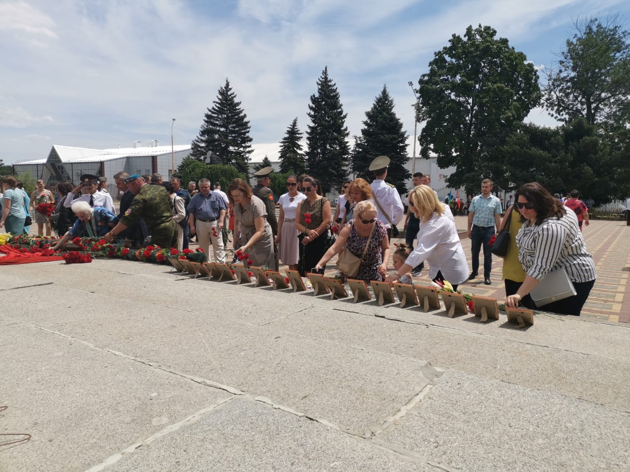 В 12.00 в Александровском парке у Вечного огня прошёл митинг памяти. Шахтинцы вспоминали самую скорбную дату в истории нашей страны — начало Великой Отечественной войны.