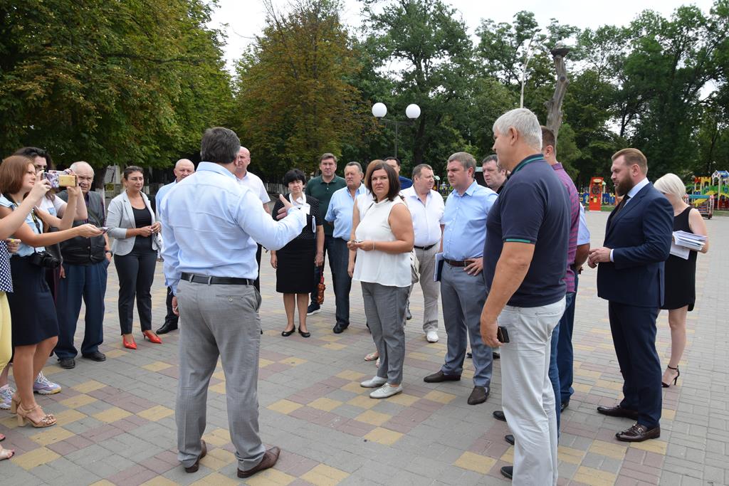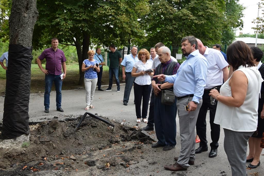 Председатель городской Думы – глава города Шахты И.А. Жукова, председатель Контрольно-счетной палаты г. Шахты Г.В. Аверкина, представители Администрации, депутатского корпуса, общественности и средств массовой информации ознакомились с ведением первого этапа реконструкции, пообщались с руководителем подрядной организации.