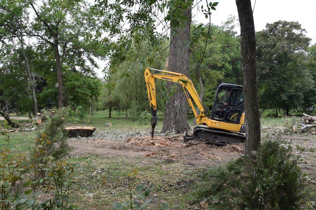 В настоящее время территория парка огорожена. Там производятся подготовительные работы для укладки на центральной аллее коммуникаций, осуществляется удаление аварийных деревьев и пней, обрезка зеленых насаждений, вывоз порубочных остатков. С 1 августа начнутся работы по замене канализационной сети, системы водоснабжения и автополива, будет выполнена прокладка кабеля для уличного освещения.