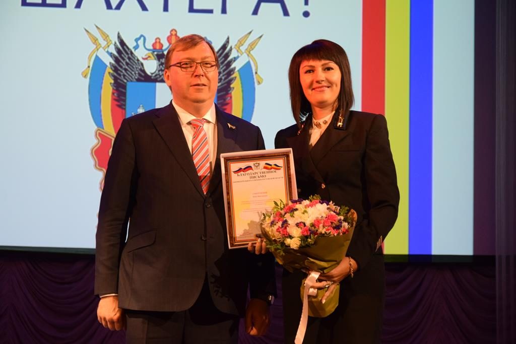 Также собравшихся в зале с праздником поздравил председатель Законодательного Собрания области Александр Ищенко. Он поощрил Благодарственными письмами ЗСРО четверых работников угольной промышленности.