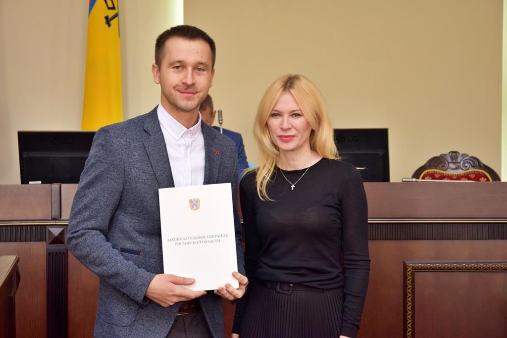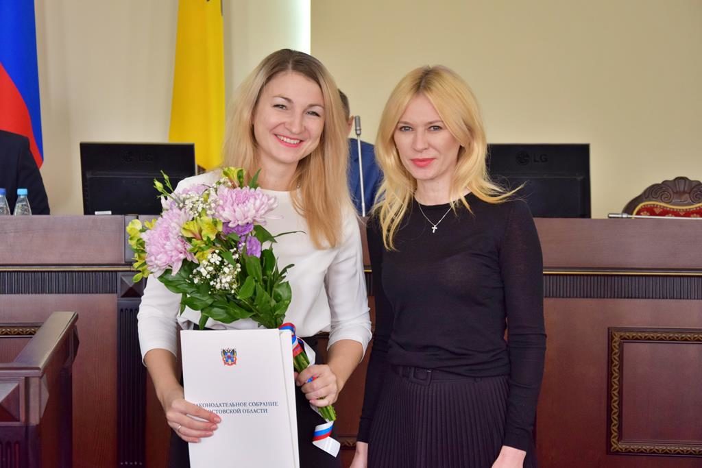 Председатель комитета Законодательного Собрания Ростовской области по взаимодействию с общественными объединениями, молодежной политике, физической культуре, спорту и туризму РО Е.П. Стенякина вручила Благодарственные письма С.В. Шматко – ведущему инженеру по продукту дирекции по маркетингу ООО «Шахтинская керамика» и Т.А. Колесниковой – юрисконсульт ООО «Шахтинская керамика».