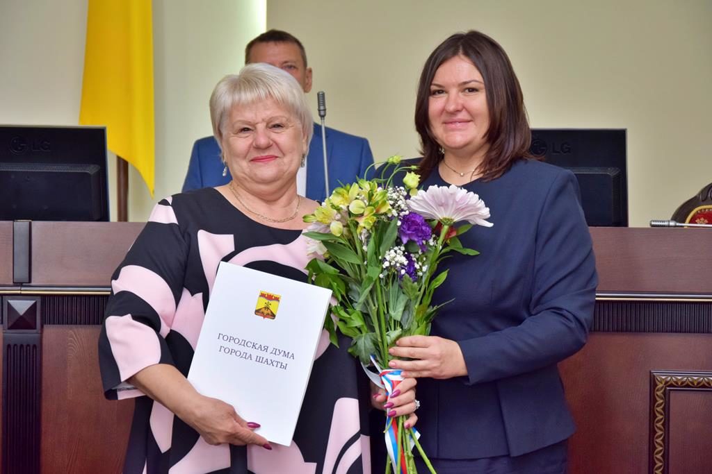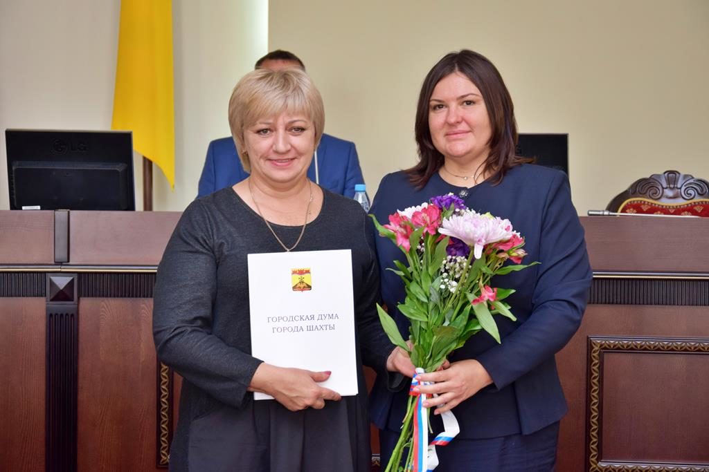 Так же председатель городской Думы — глава города Шахты И.А.Жукова вручила Благодарственные письма городской Думы в преддверии празднования международного Дня учителя: Бочаровой Ирине Анатольевне – учителю истории и обществознания муниципального бюджетного общеобразовательного учреждения г.Шахты Ростовской области «Средняя общеобразовательная школа №12», Прынь Ольге Георгиевне – педагогу дополнительного образования высшей категории муниципального бюджетного общеобразовательного учреждения дополнительного образования г.Шахты Ростовской области «Городского Дома детского творчества», Кадыровой Тамаре Витальевне – директору муниципального бюджетного общеобразовательного учреждения г.Шахты Ростовской области «Средняя общеобразовательная школа №35» и Кураковой Ирине Александровне – директору муниципального бюджетного общеобразовательного учреждения г.Шахты Ростовской области «Средняя общеобразовательная школа №38».