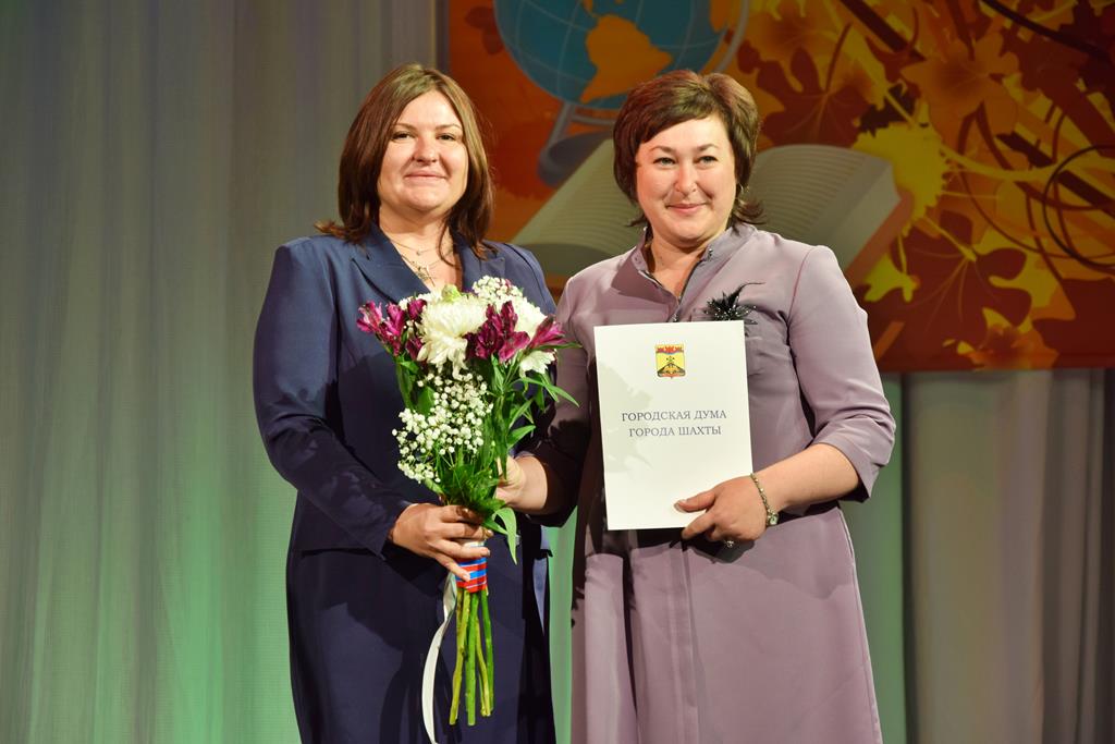 В этот день с добрыми словами учителей пришли поздравить председатель городской Думы — глава города Шахты Ирина Жукова, глава Администрации Андрей Ковалев, помощник председателя комитета по молодёжной политике Законодательного Собрания РО Екатерины Стенякиной Наталья Торосян, директор департамента образования Надежда Соболева.