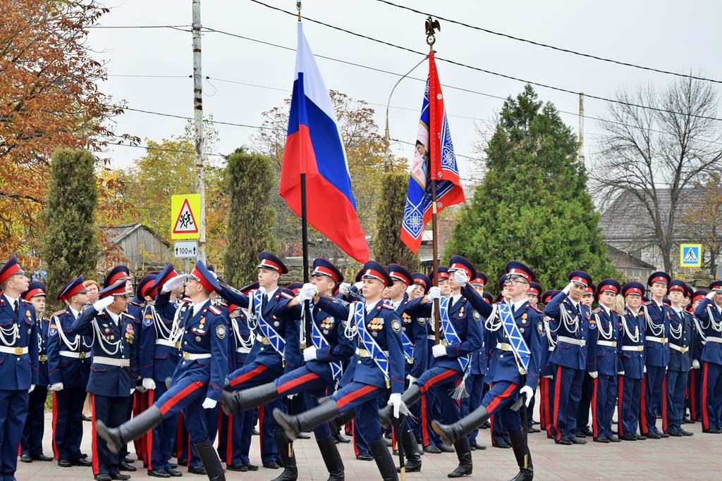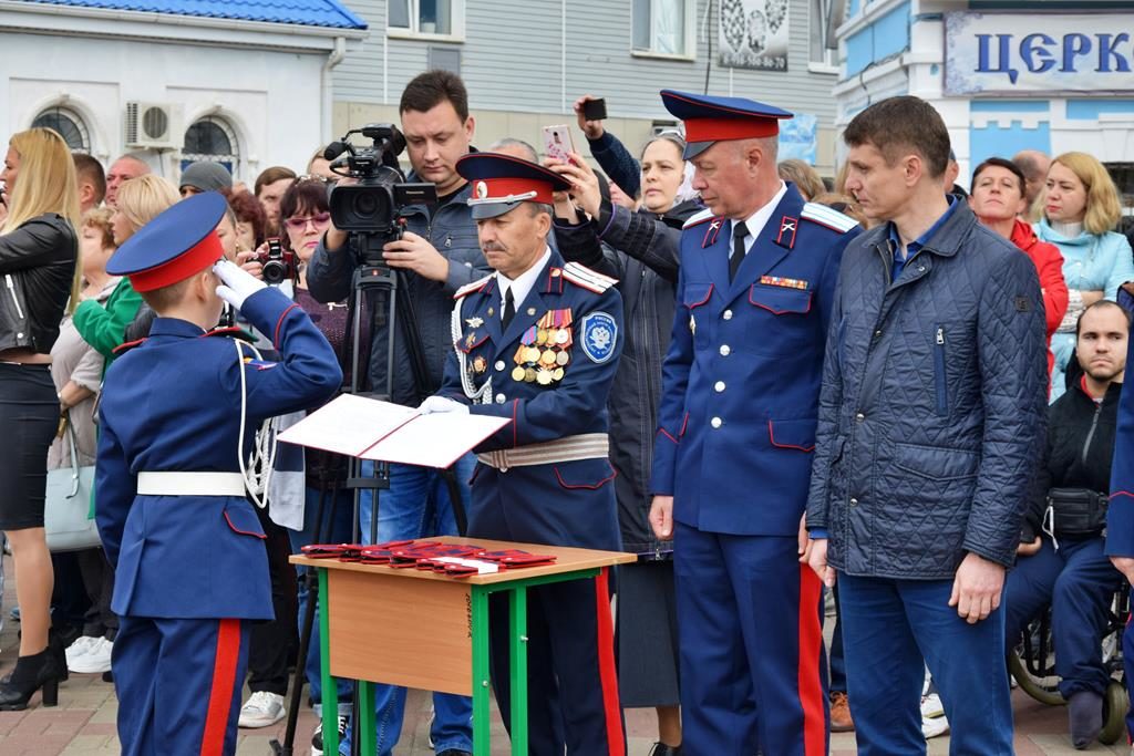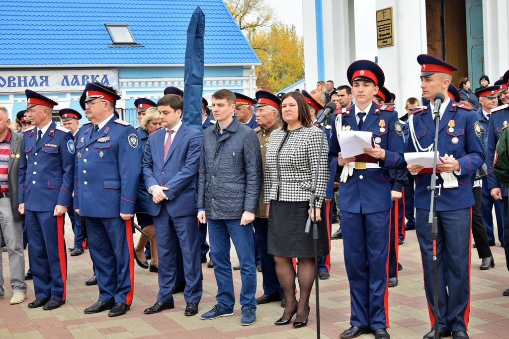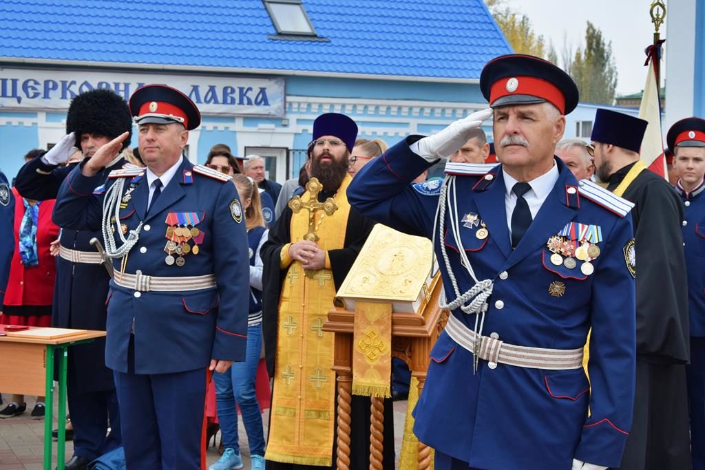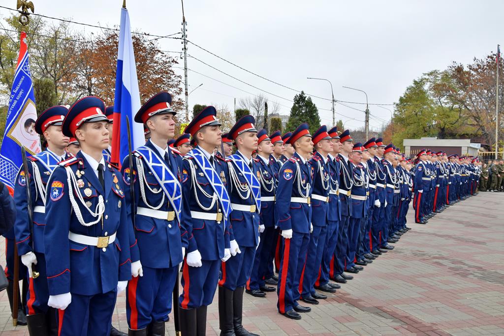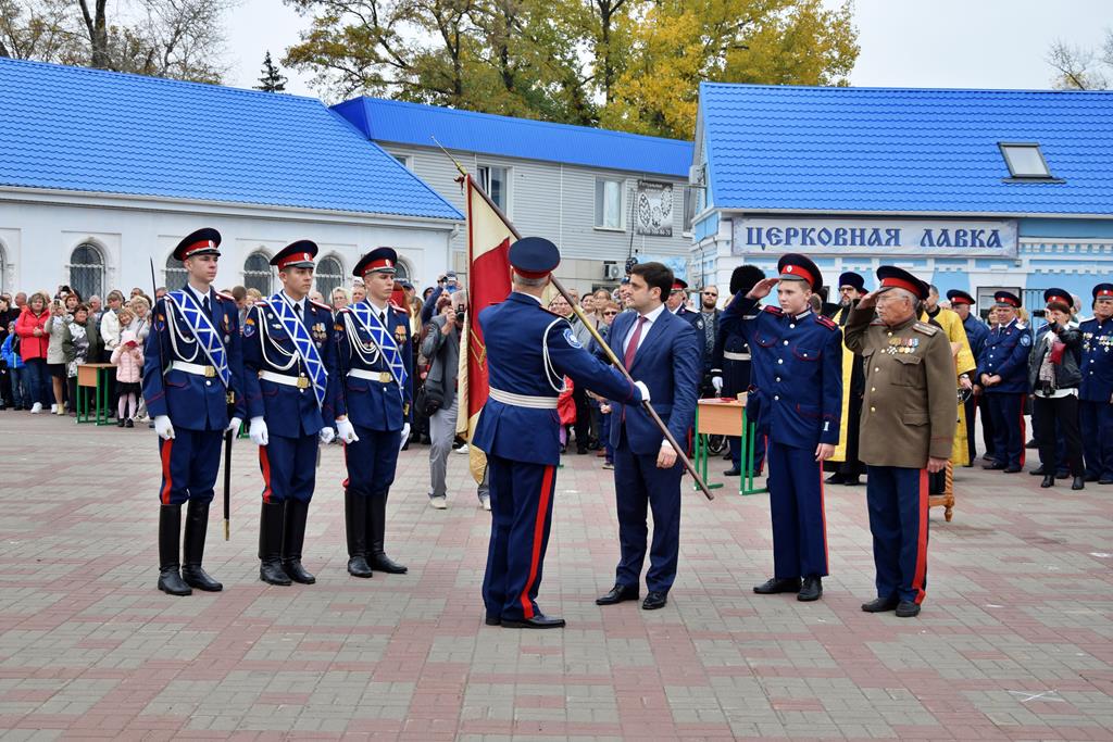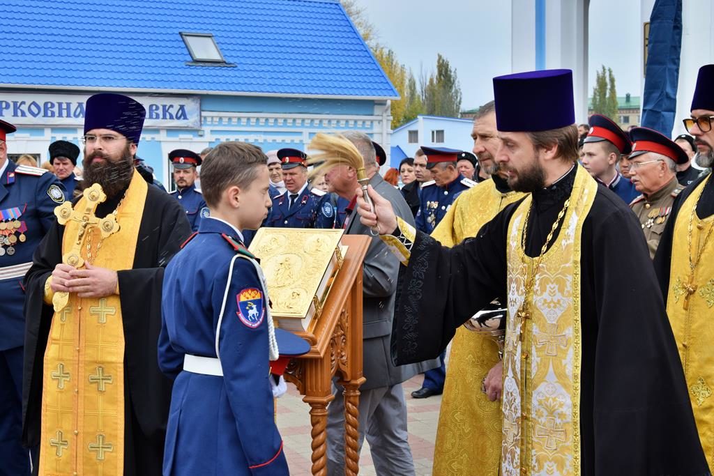19 октября на площади Покровского кафедрального собора города Шахты воспитанники Шахтинского Я.П. Бакланова казачьего кадетского корпуса приняли Знамя, присягу и получили погоны.