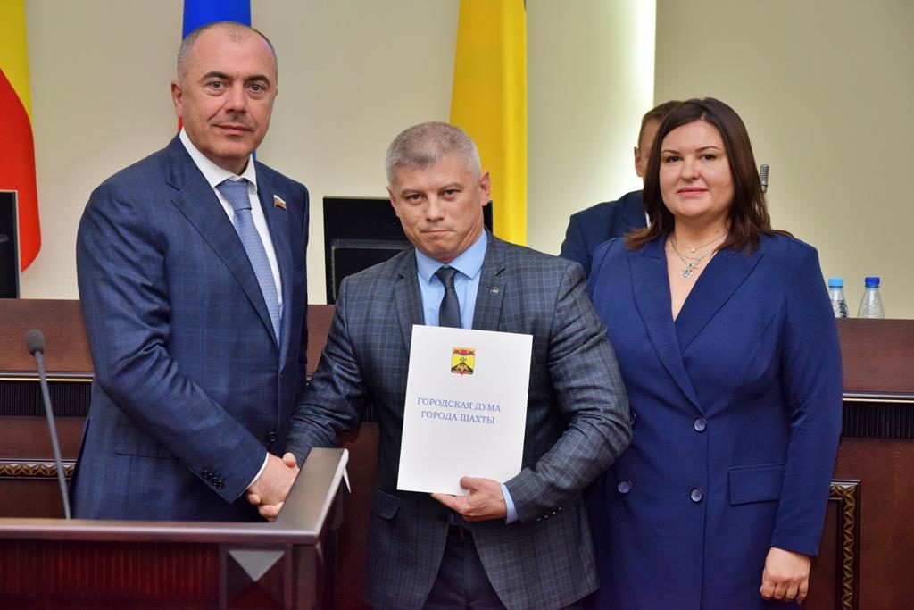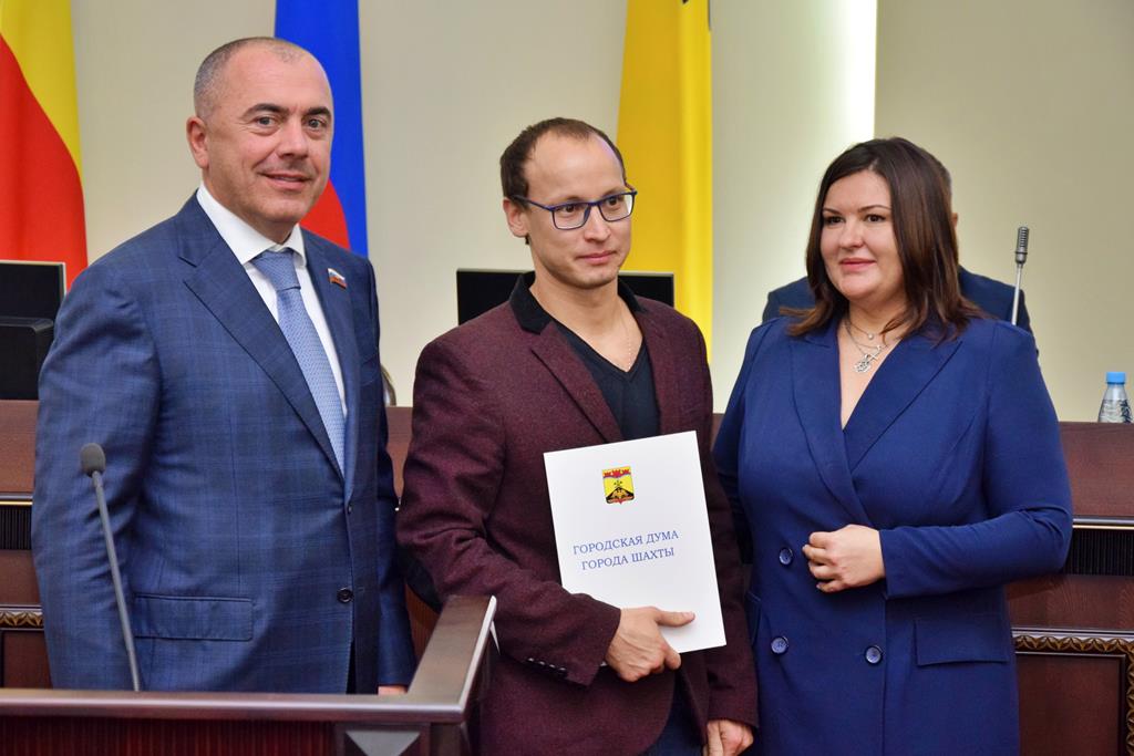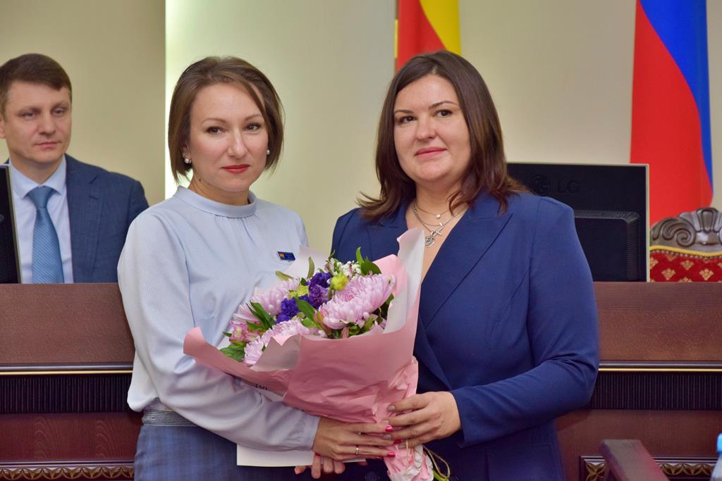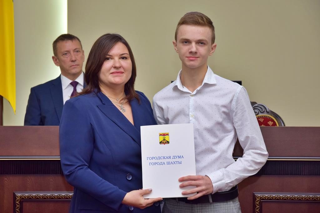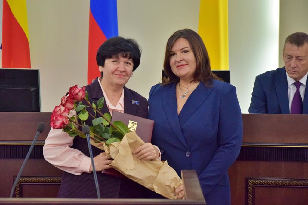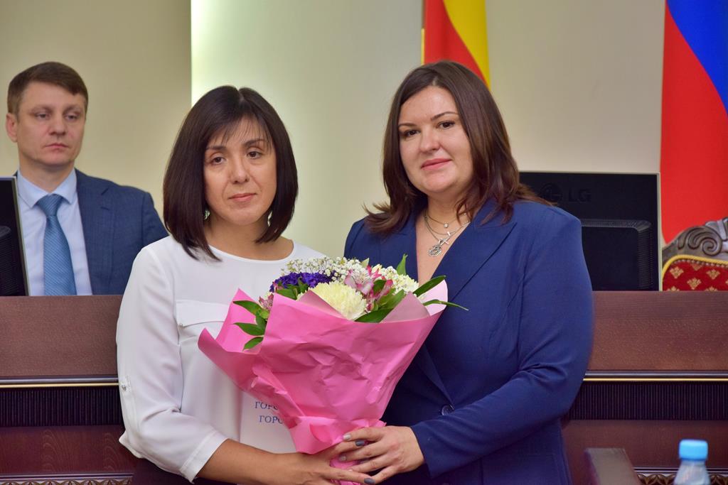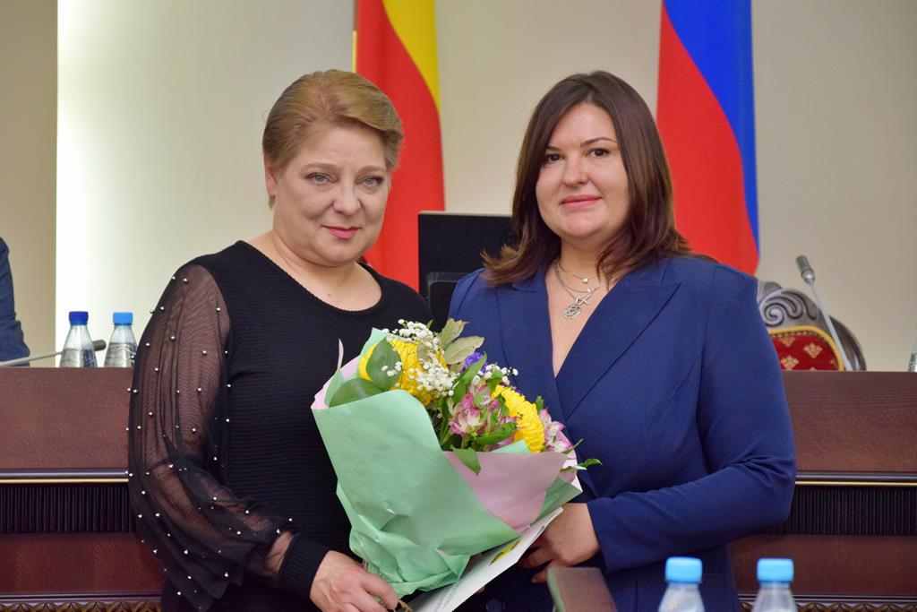 Председатель городской Думы — глава города Шахты И.А.Жукова вручила Почетные грамоты городской Думы председателю Контрольно-счетной палаты города Шахты – Аверкиной Галине Владимировне, управляющему директору общества с ограниченной ответственностью «Шахтинская газотурбинная электростанция» – Подгорному Дмитрию Эдуардовичу.