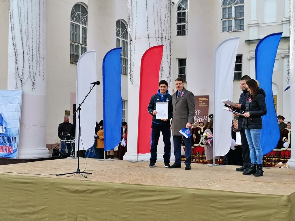 В честь Дня народного единства отделом по молодежной политике и Молодежным Правительством при Администрации города Шахты была организована и проведена акция «Российский триколор».