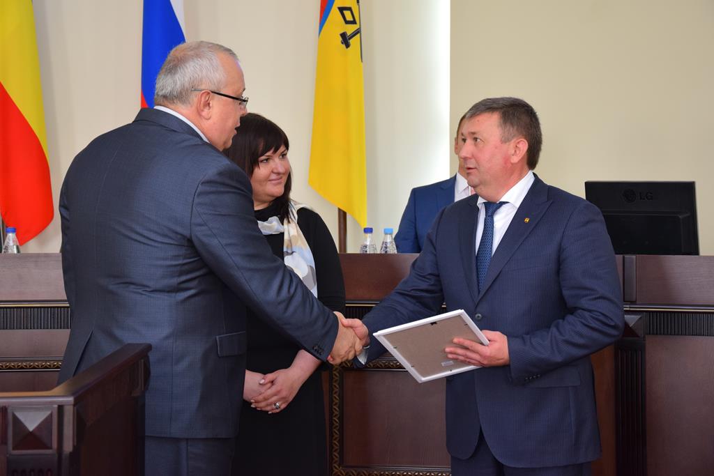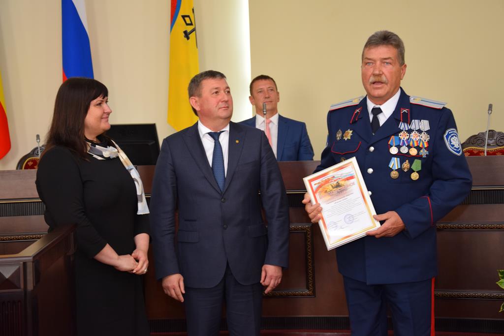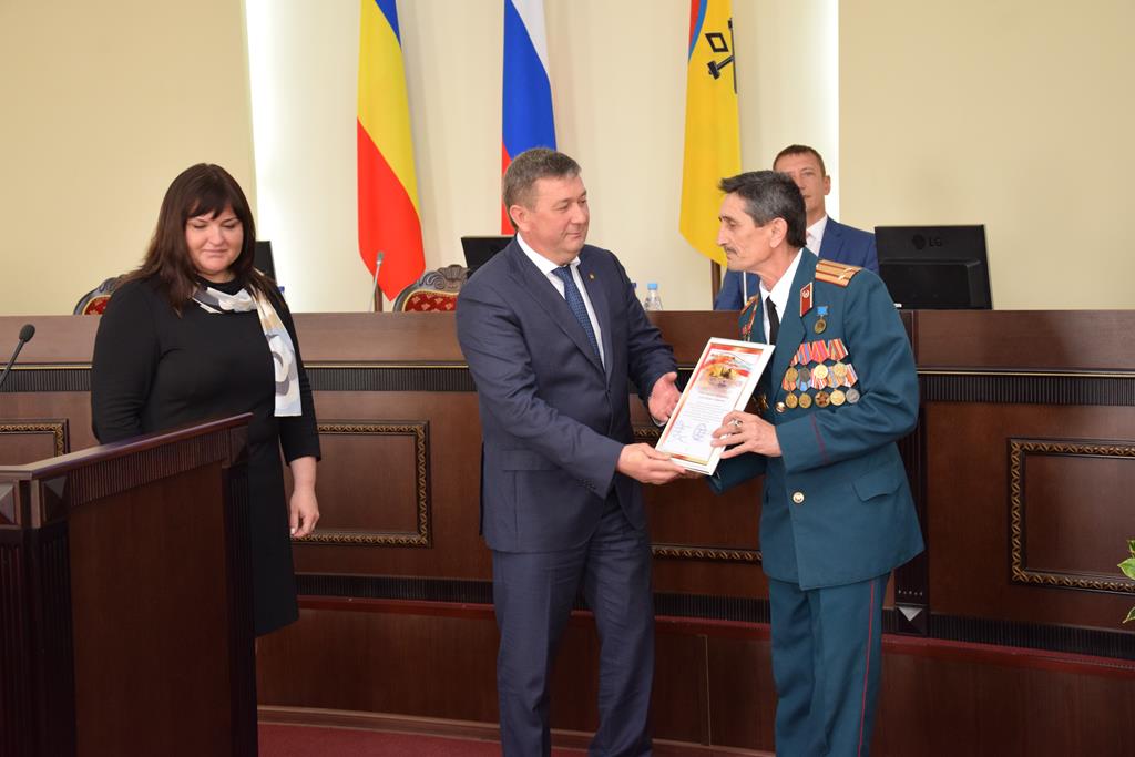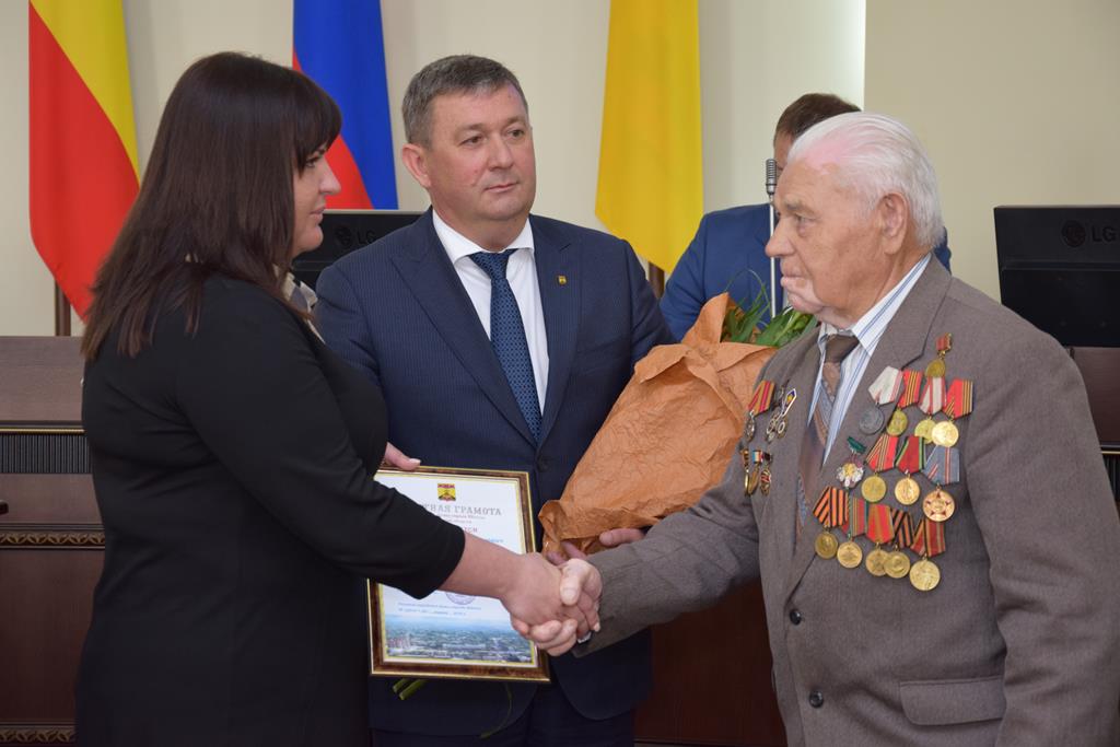 Заседание началось с торжественной процедуры вручения Почётной грамоты городской Думы города Шахты Николаю Алексеевичу Гетманову – ветерану Великой Отечественной войны, председателю Артёмовского совета ветеранов – за активную общественную деятельность, большой личный вклад в развитие муниципального образования «Город Шахты», патриотическое воспитание молодёжи и укрепление связей между поколениями.