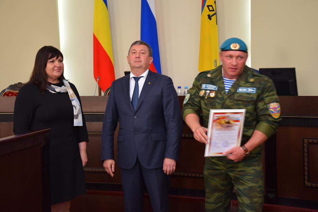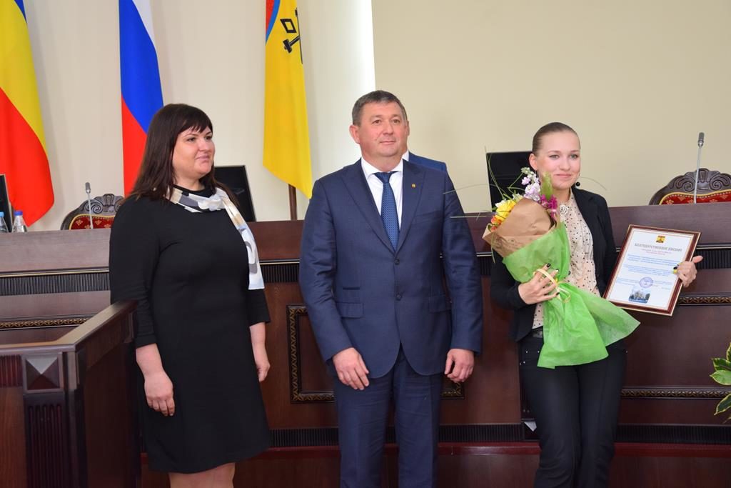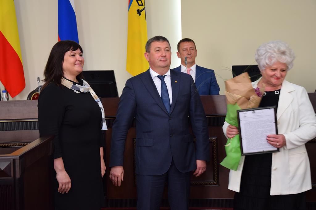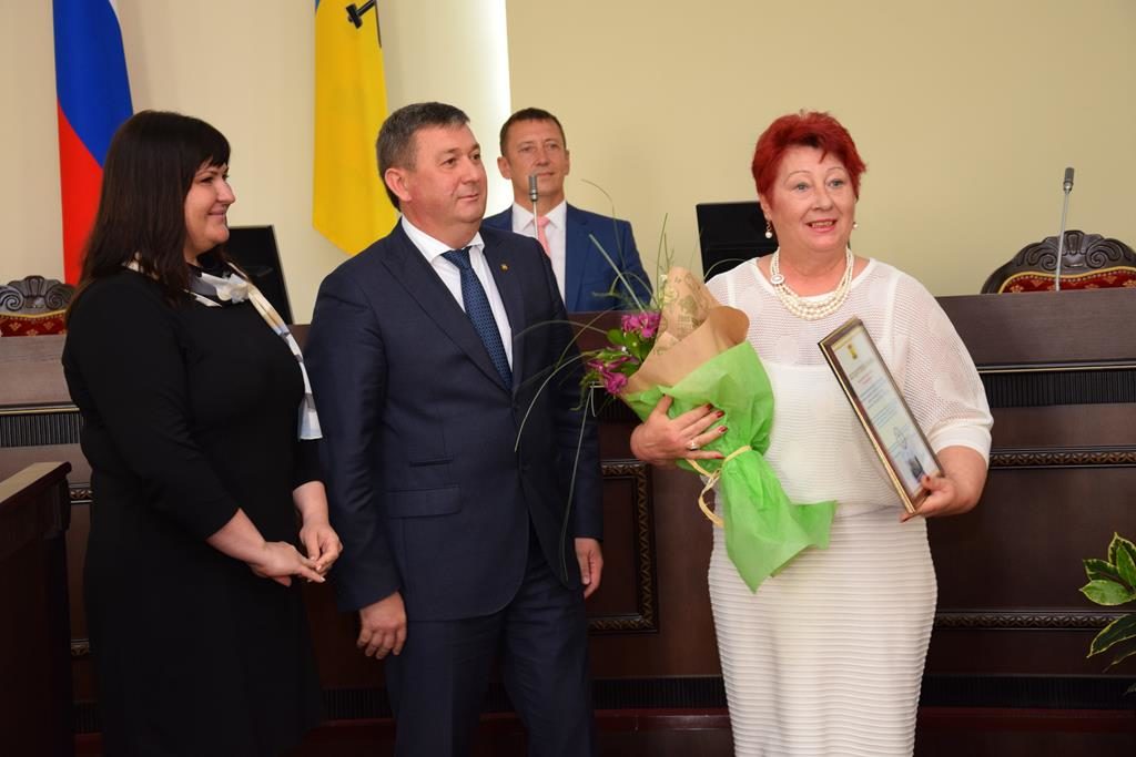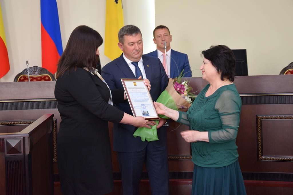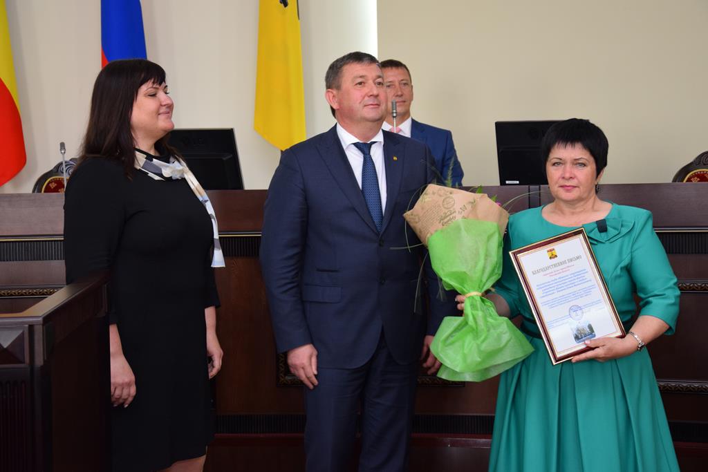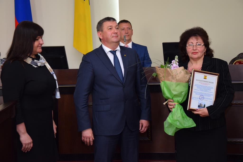 Затем председатель городской Думы — глава города Ирина Жукова и глава Администрации Игорь Медведев провели торжественную процедуру вручения Благодарственных писем городской Думы и Администрации города Шахты наиболее отличившимся коллективам и гражданам в подготовке празднования 71-й годовщины Победы в Великой Отечественной войне. Награды и поощрения получили: Арпино Людмила Николаевна – заведующая клубом им. Л.Красина структурного подразделения муниципального бюджетного учреждения культуры города Шахты «Городской Дворец культуры и клубы»; Моисеенко Ирина Юрьевна – директор муниципального бюджетного учреждения культуры города Шахты «Городской Дворец культуры и клубы»; Шевель Татьяна Николаевна – заведующая клубом «Молодежный» структурного подразделения муниципального бюджетного учреждения культуры города Шахты «Городской Дворец культуры и клубы»; Волкова Елена Александровна – заведующая Домом культуры им. Ф.Дзержинского структурного подразделения муниципального бюджетного учреждения культуры города Шахты «Городской Дворец культуры и клубы»; – Перцева Наталья Николаевна – заведующая Дворцом культуры им. М.П. Чиха структурного подразделения муниципального бюджетного учреждения культуры города Шахты «Городской Дворец культуры и клубы»; Евдокимова Ангелина Андреевна – директор современной школы театрального искусства «Элита» Ангелины Евдокимовой; Камаева Елена Валентиновна – заведующая клубом «Южный» структурного подразделения муниципального бюджетного учреждения культуры города Шахты «Городской Дворец культуры и клубы». Также были награждены Благодарственными письмами: коллектив ГБОУ РО «Шахтинский Я.П. Бакланова кадетский казачий корпус»; Хоптяр Андрей Евгеньевич — командующий 22-й бригады, гвардии генерал-майор; Ичетовкин Сергей Витальевич — председатель фонда ВДВ города Шахты; члены Шахтинского морского собрания; Луганцев Михаил Борисович — координатор Всероссийской акции «Бессмертный полк», Пятаков Александр Александрович — руководитель совета воинов Афганистана в городе Шахты «Патриот», Свеженцев Валерий Викторович — атаман станичного казачьего общества «Власово-Аюта».