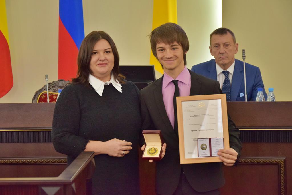 Так же председатель городской Думы-глава города Шахты Ирина Жукова, на основании Постановления Наградной Думы Российской геральдической палаты, вручила орден «За вклад в просвещение» Ткачеву А.Б.