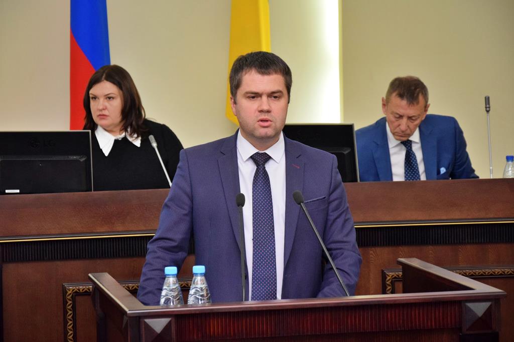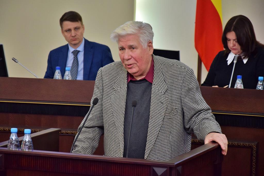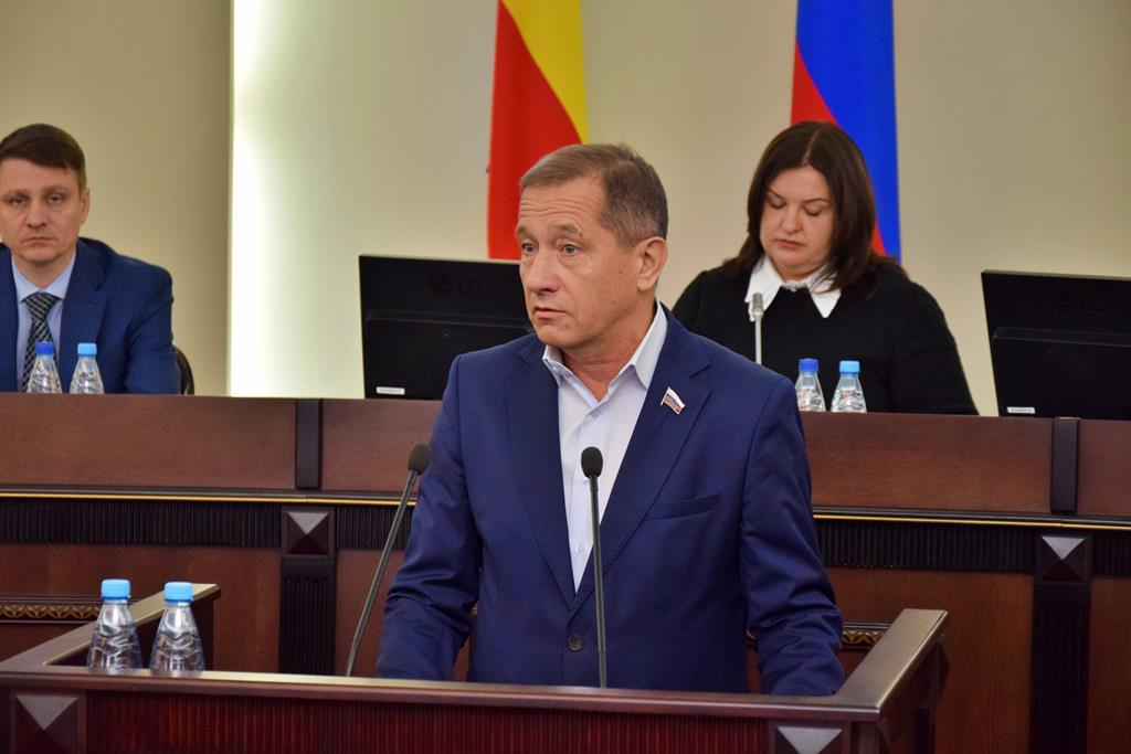 Шестой вопрос о внесении изменений в решение городской Думы города Шахты «Об установлении налога на имущество физических лиц на территории муниципального образования «Город Шахты», докладчик директор Департамента экономики В.О. Горшков.