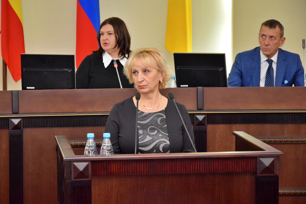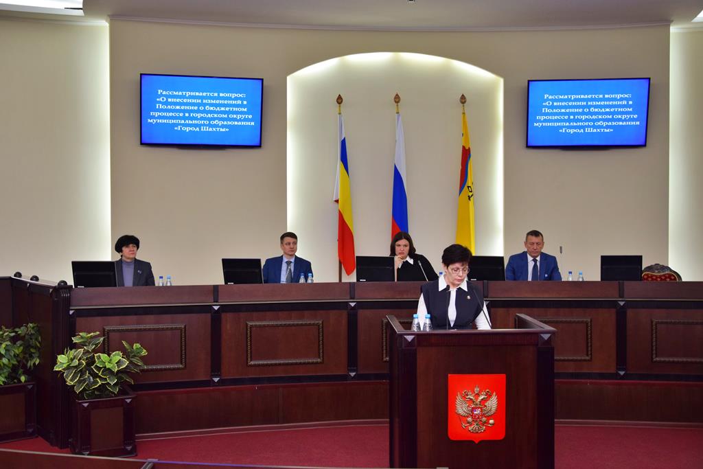 Первый вопрос о внесении изменений в Положение о бюджетном процессе в городском округе муниципального образования «Город Шахты», докладчик директор Департамента финансов Администрации города Шахты Л.А. Зуева.