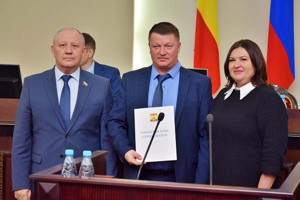 Посте торжественной церемонии вручения Благодарственных писем городской Думы города Шахты, выступил депутат Государственной Думы Федерального Собрания Российской Федерации М.И. Щаблыкина и А.В. Каминский.