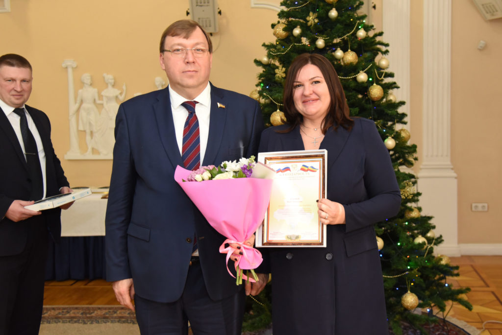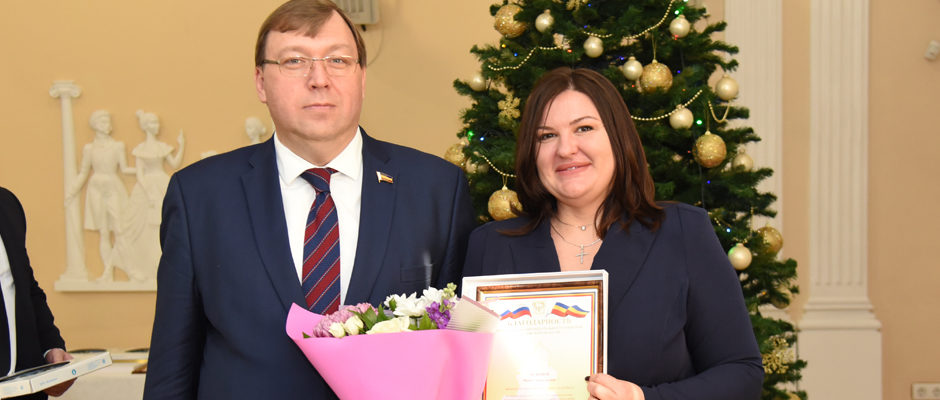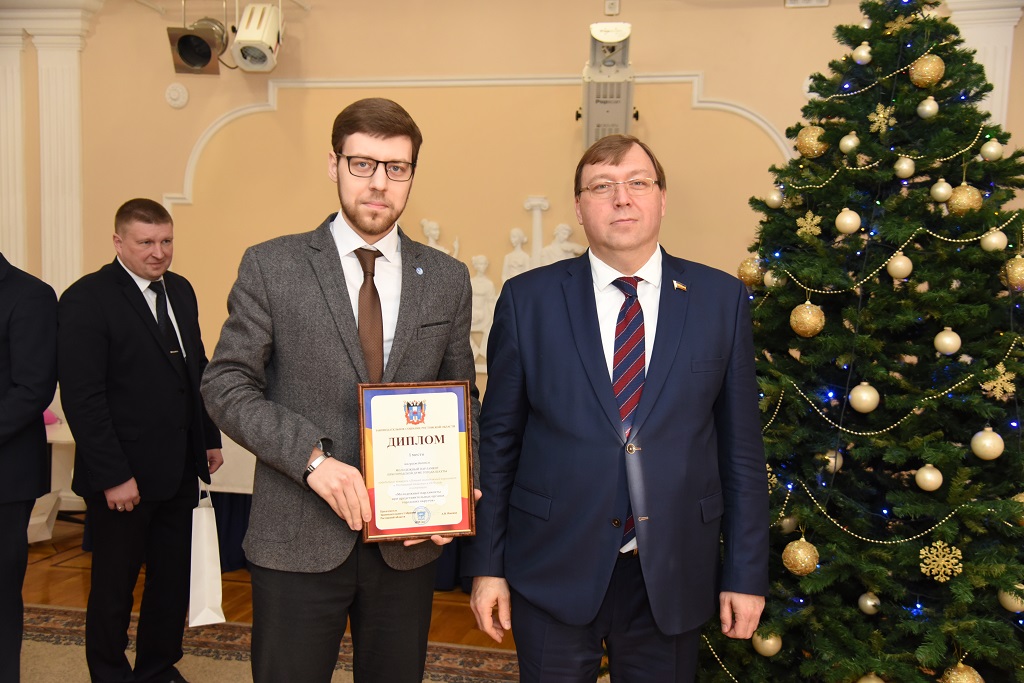 20 декабря состоялось торжественная церемония вручения дипломов победителям конкурса на лучшую практику деятельности представительных органов муниципальных районов и городских округов в Ростовской области в 2019 году. Председатель Законодательного Собрания Ростовской области А.В. Ищенко вручил дипломы победителям конкурса.