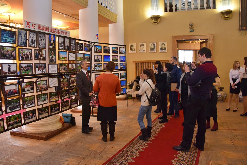 В фойе театра работала тематическая выставка, представленная сотрудниками краеведческого музея, а также фотоэкспозиция Александра Титова, посвященная 75-летию Великой Победы.