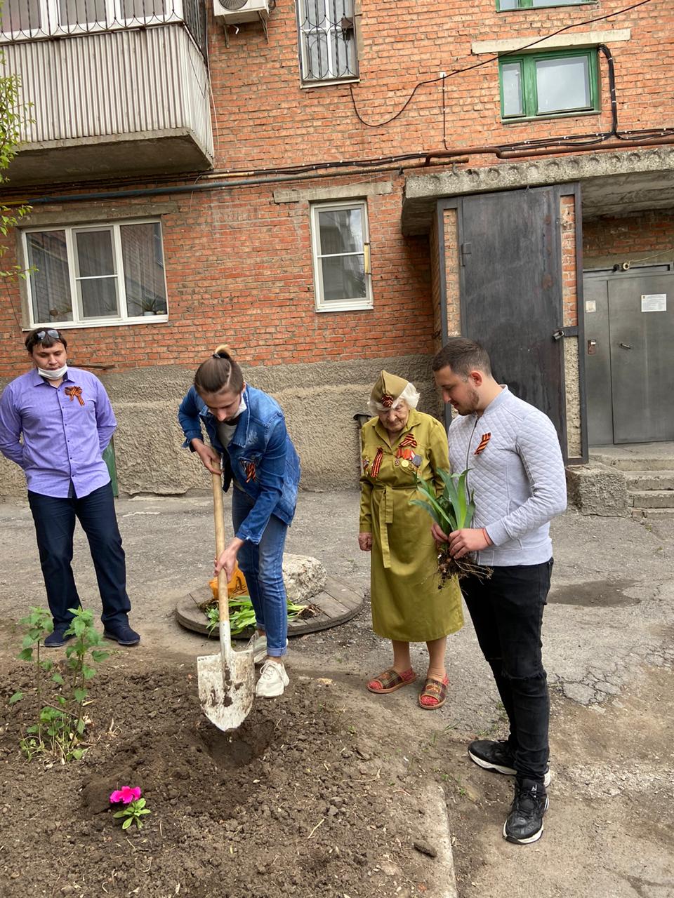 Накануне празднования 75-летия Великой Победы в городе прошла акция «Цветы под окном ветерана». Активное участие в её организации и проведении приняли сотрудники ЦСО-№1 (директор Л.М.Брюховецкая) волонтеры и В.А.Новоселов, помощник депутата Ю.Н.Севостьянова, и Д.М.Цыгулев, помощник депутата О.Н.Данилова. Они навестили Ветеранов Великой Отечественной войны Т.И.Иванову, И.Г.Соболевскую, В.И.Ивашову, А.Д.Погребного, А.Г.Тарарина, сердечно поздравили с Днём Победы, поклонились ветеранам за их свершения, вручили Георгиевские ленточки, письма — треугольники, изготовленные воспитанниками центра «Добродея», продуктовые наборы и высадили цветы под окнами ветеранов.
