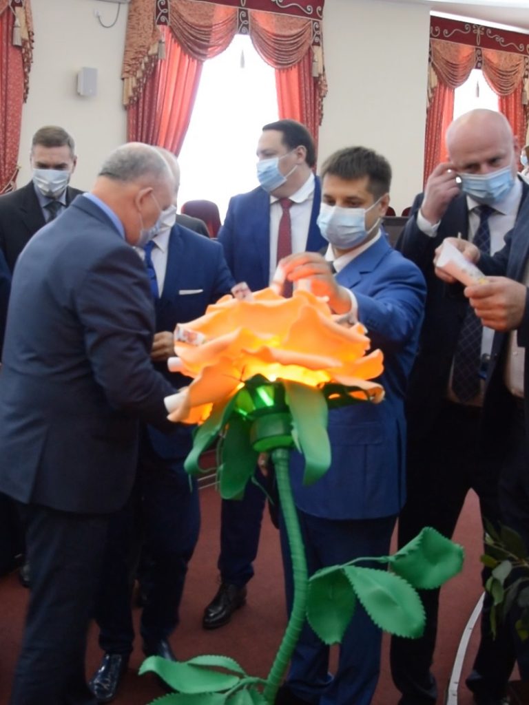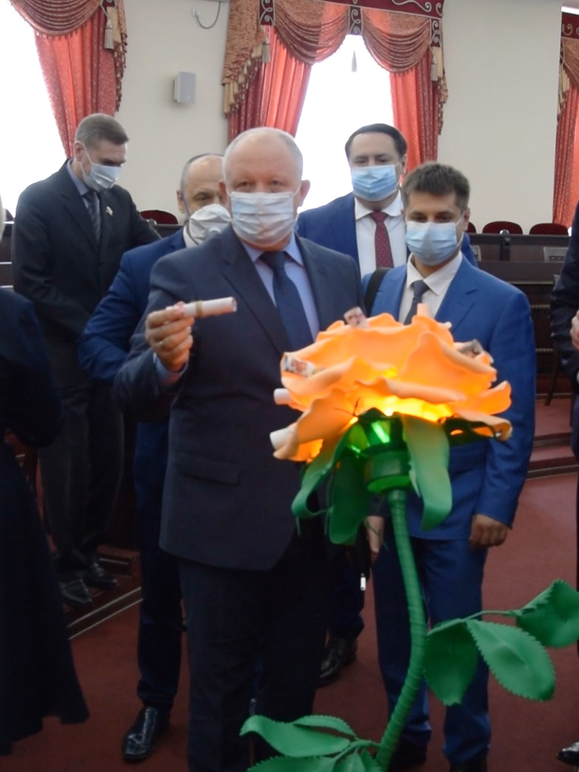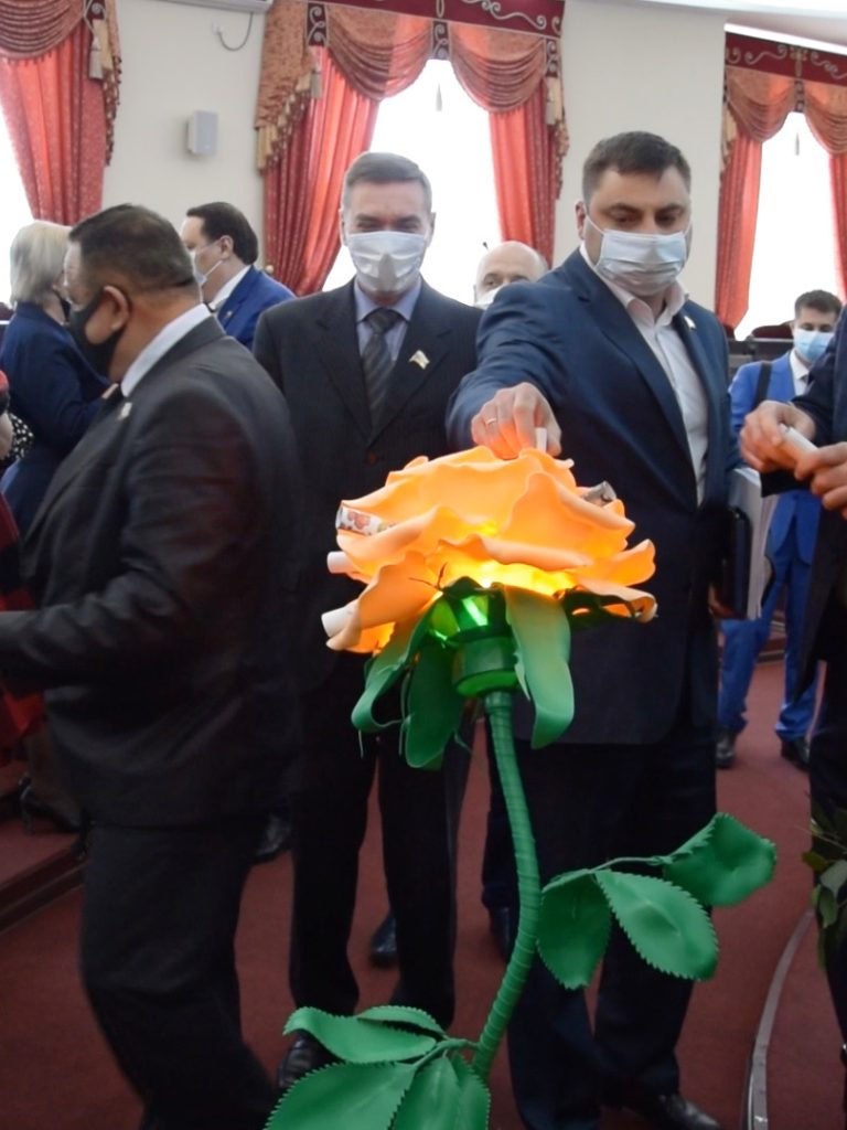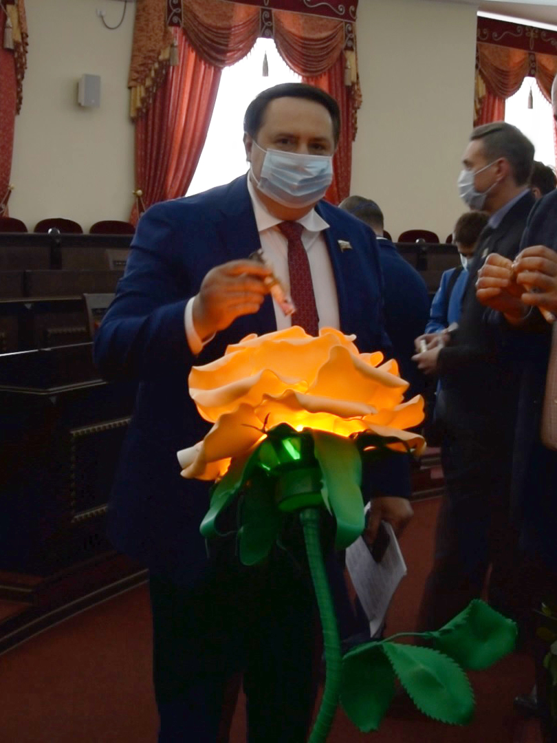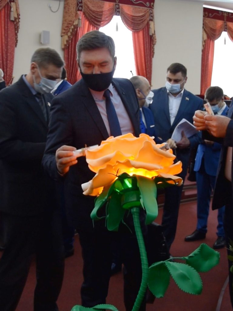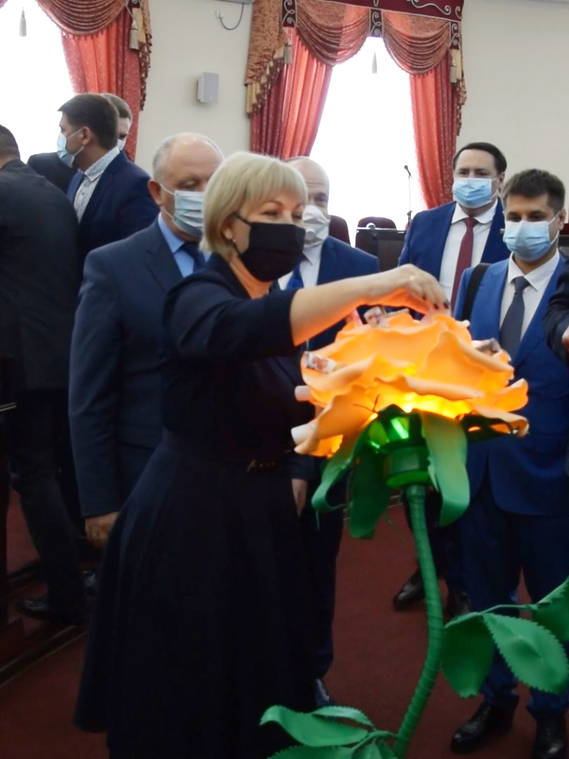 По окончании заседания городской Думы председатель городской Думы — глава города Шахты И.А. Жукова обратилась к депутатам с предложением об участии в праздновании Дня защиты детей. Ребята, которые живут шахтинском Центре помощи детям №3 изготовили чудесный цветок и разместили на нем маленькие послания со своими заветными желаниями, а исполнить их было предложено депутатам.