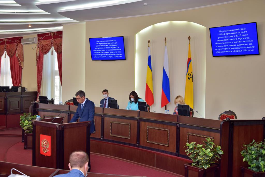 Перед рассмотрением основной повестки дня выступил заместитель главы Администрации города Шахты Л.В. Лебединский, в рамах «Парламентского часа» и представил депутатам информацию о ходе реализации в 2020 году национального проекта «Безопасные и качественные автомобильные дороги» на территории муниципального образования «Город Шахты», а так же директор Департамента образования г. Шахты Н.И. Соболева с информацией о подготовке образовательных организаций к проведению единого государственного экзамена и организации с 1 июня 2020 года работы в режиме дежурных групп дошкольных образовательных организаций на территории муниципального образования «Город Шахты» в условиях соблюдения комплекса санитарно-противоэпидемических мероприятий, направленных на предупреждение распространения новой коронавирусной инфекции (COVID-19).