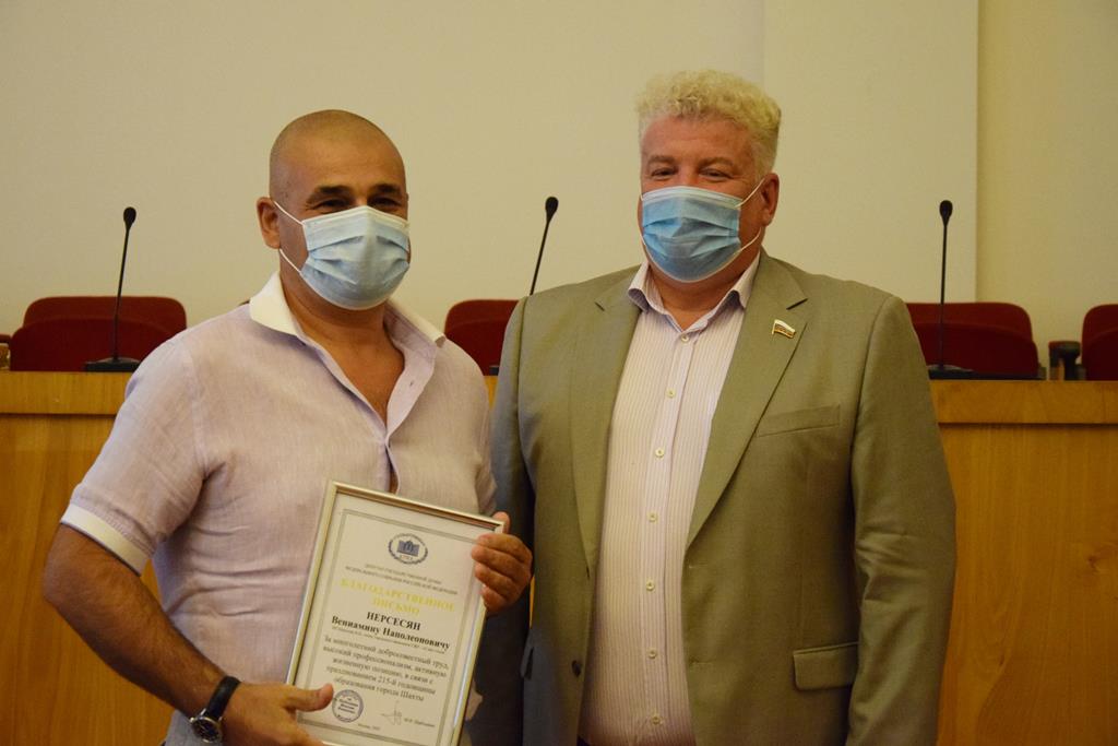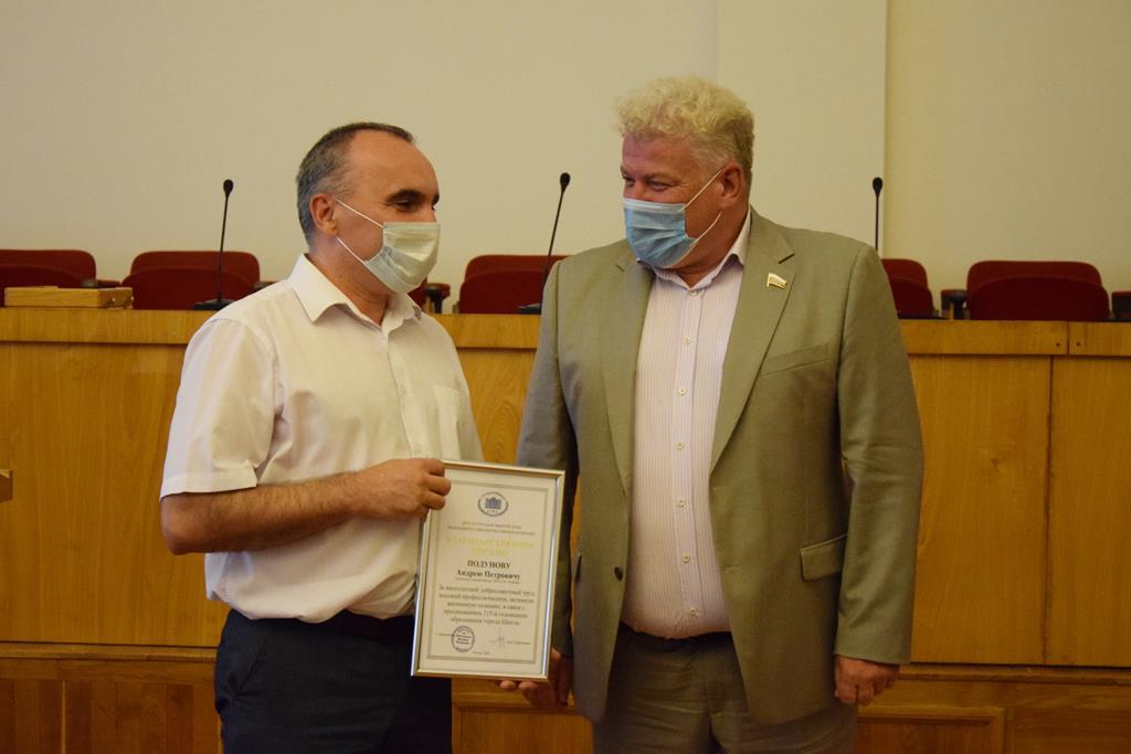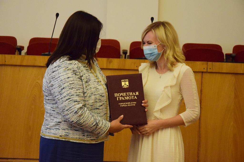 Почетной грамотой городской Думы города Шахты награждены председатель комитета Законодательного Собрания Ростовской области по взаимодействию с общественными объединениями, молодежной политике, физической культуре, спорту и туризму Е.П. Стенякина, председатель Территориальной избирательной комиссии города Шахты с 2000 по 2013 годы, член Общественной палаты города Шахты третьего (2016-2019) и четвертого (2019-2022) созывов Жемойтель Владимир Викторович и ветеран Великой Отечественной войны Иван Тихонович Кипа.