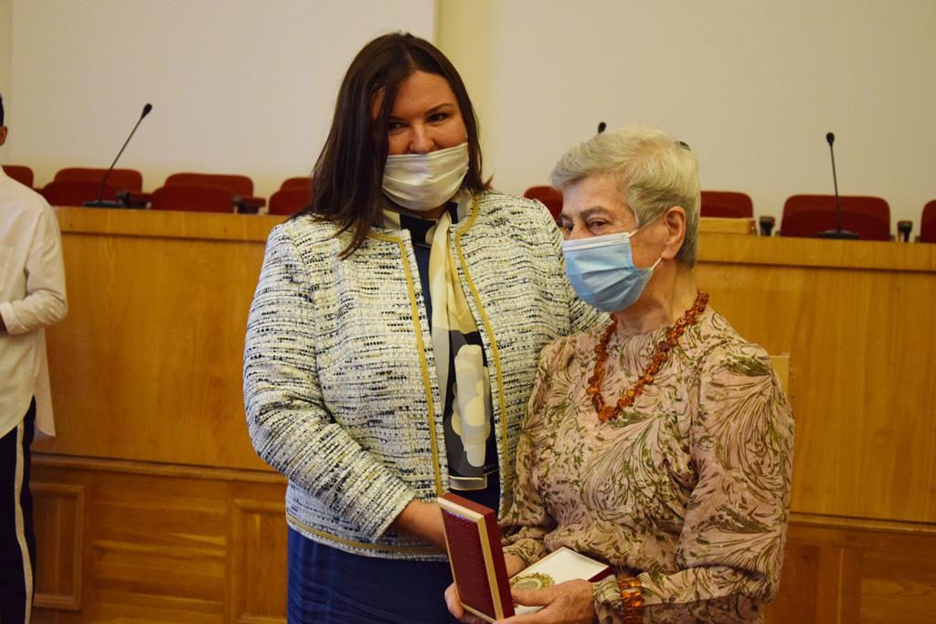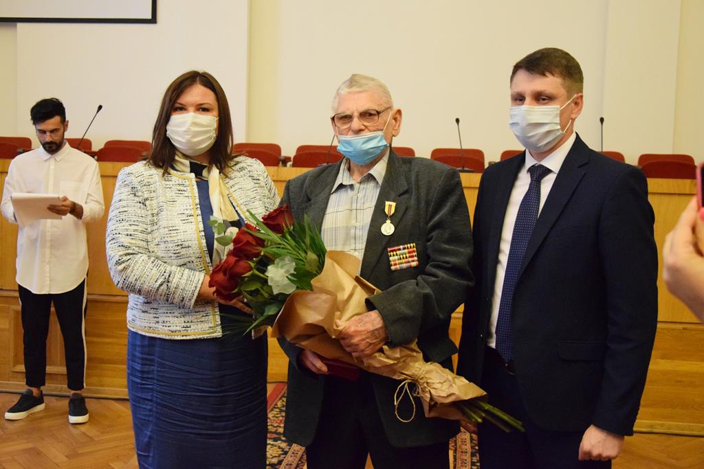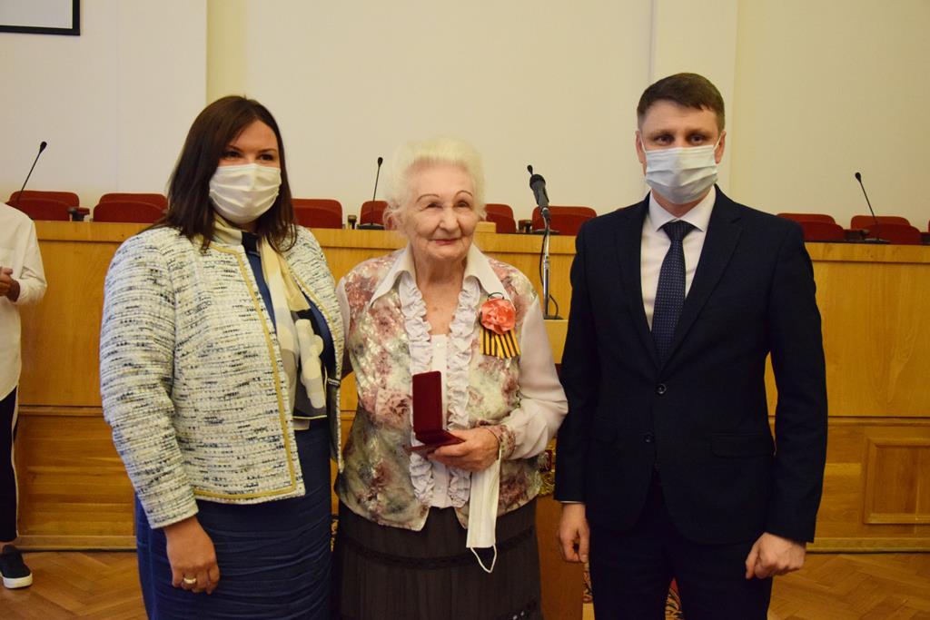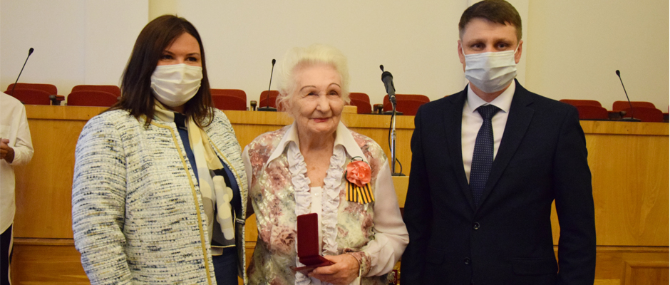Знаки почета муниципального образования «Город Шахты» — медали «За слуги перед городом Шахты» получили ветераны Великой Отечественной войны Татьяна Бабинян и Алексей Ларионов.