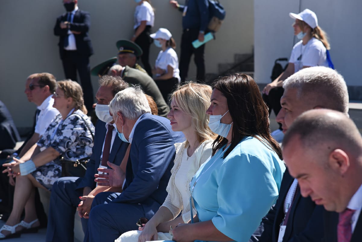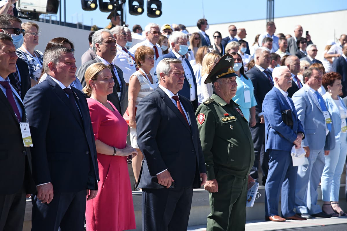 В торжественном мероприятии приняли участие ветераны Великой Отечественной войны, представители Правительства Российской Федерации, Полномочного представительства Президента РФ в Южном федеральном округе, Губернатор Ростовской области Василий Голубев, Председатель Законодательного Собрания Ростовской области Александр Ищенко, депутаты донского парламента, глава Донской митрополии, митрополит Ростовский и Новочеркасский Меркурий, главы российских регионов, руководители силовых и общественных структур, председатель городской Думы – глава города Шахты Ирина Жукова.