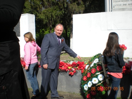 При содействии депутата городской Думы по избирательному округу №21 Скорикова Александра Викторовича прошли мероприятия по уборке на площади «Славы» по пр-ту Ленинского Комсомола: ремонт стеллы памяти погибшим воинам, покраска лавочек и урн, покос травы, побелка деревьев. Депутат от всей души поздравил 08.05.11 г. с праздником всех пришедших на торжественный митинг, посвященный 66 годовщине со Дня Победы в Великой Отечественной войне 1941-1945 гг.