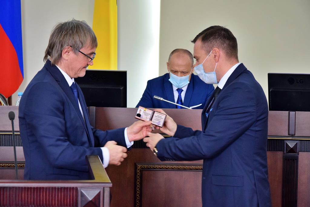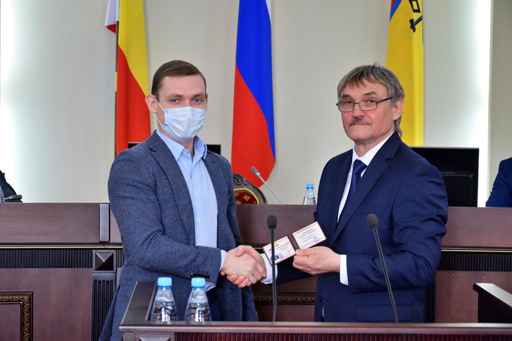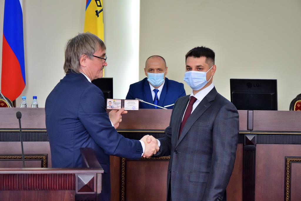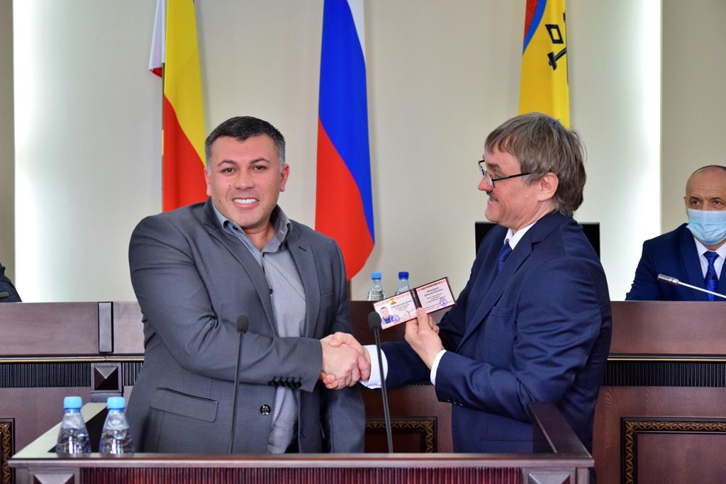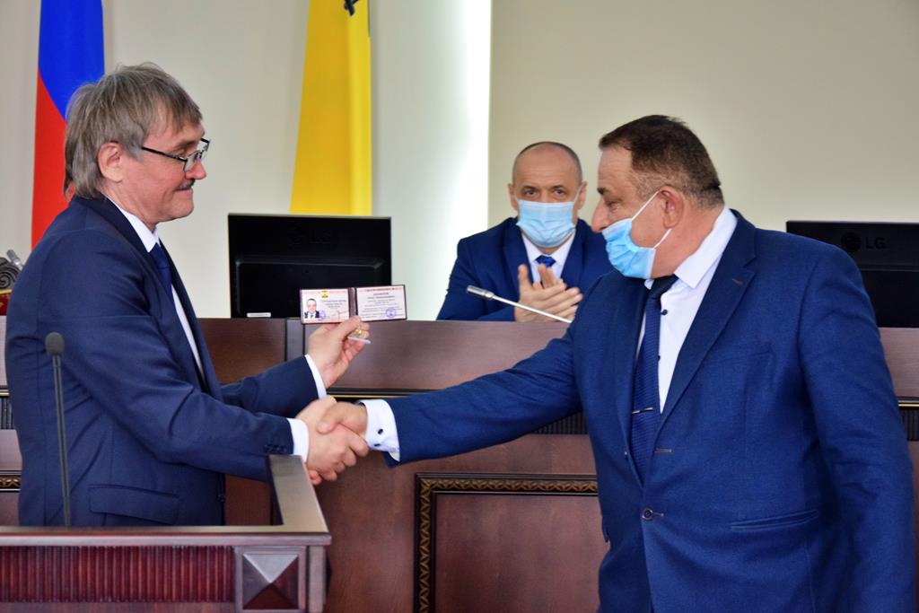 Заседание началось с торжественной процедуры вручения председателем городской Думы — главой города А.Г. Горцевским удостоверений и нагрудных знаков вновь избранным депутатам городской Думы города Шахты 7-го созыва.