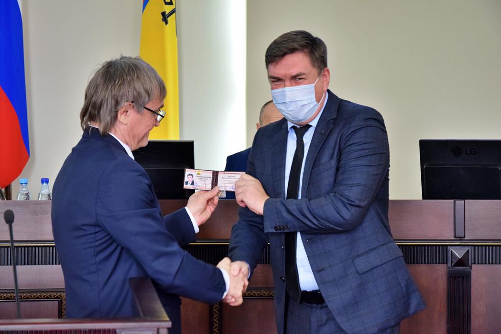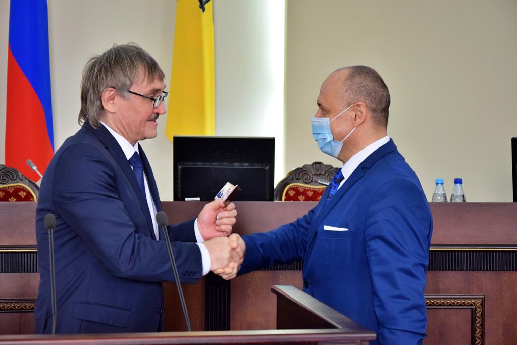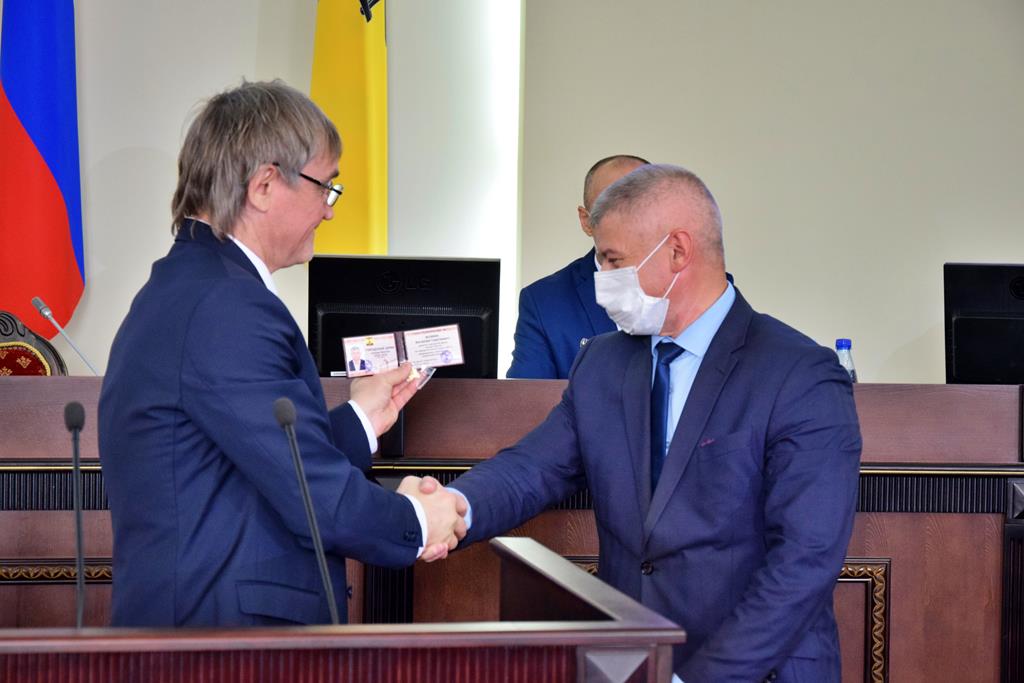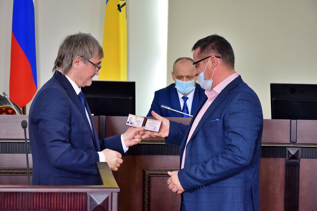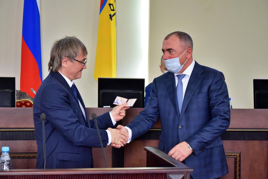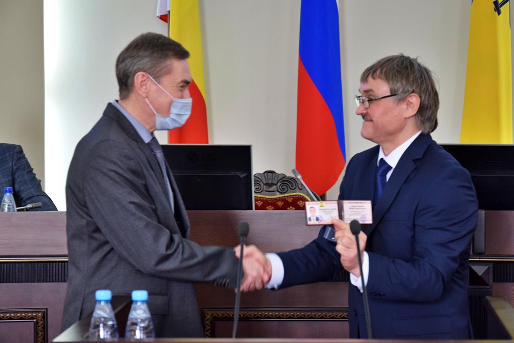 Заседание началось с торжественной процедуры вручения председателем городской Думы — главой города А.Г. Горцевским удостоверений и нагрудных знаков вновь избранным депутатам городской Думы города Шахты 7-го созыва.
