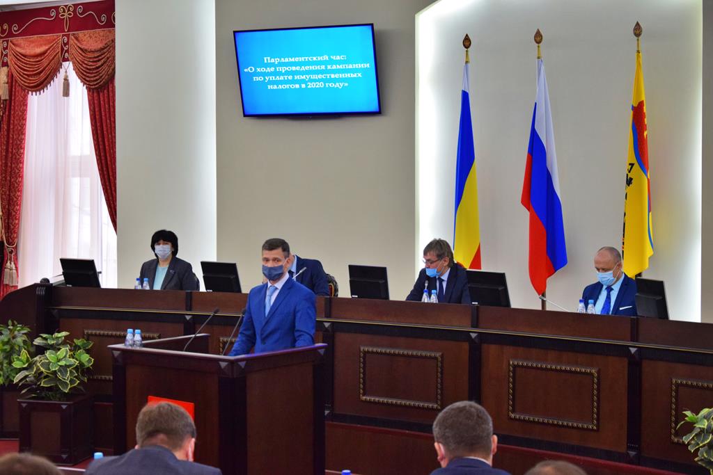 Перед рассмотрением основной повестки дня выступил директор Департамента экономики В.О. Горшков, в рамах «Парламентского часа» и представил депутатам информацию о ходе проведения кампании по уплате имущественных налогов в 2020 году, а в качестве содокладчика выступил председатель КУИ города Шахты А.Г. Юрьев.