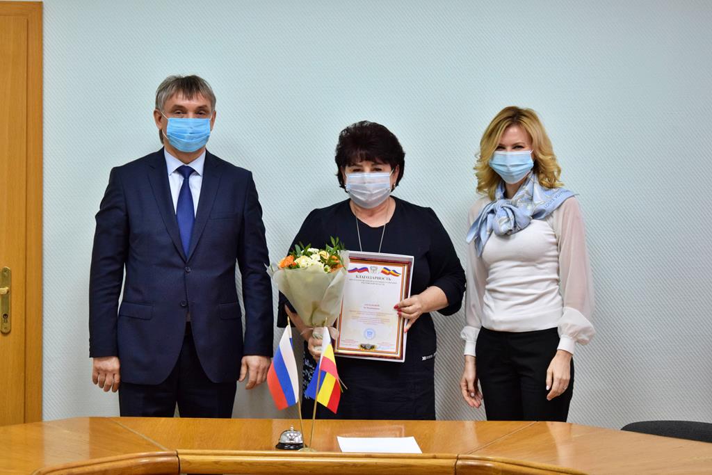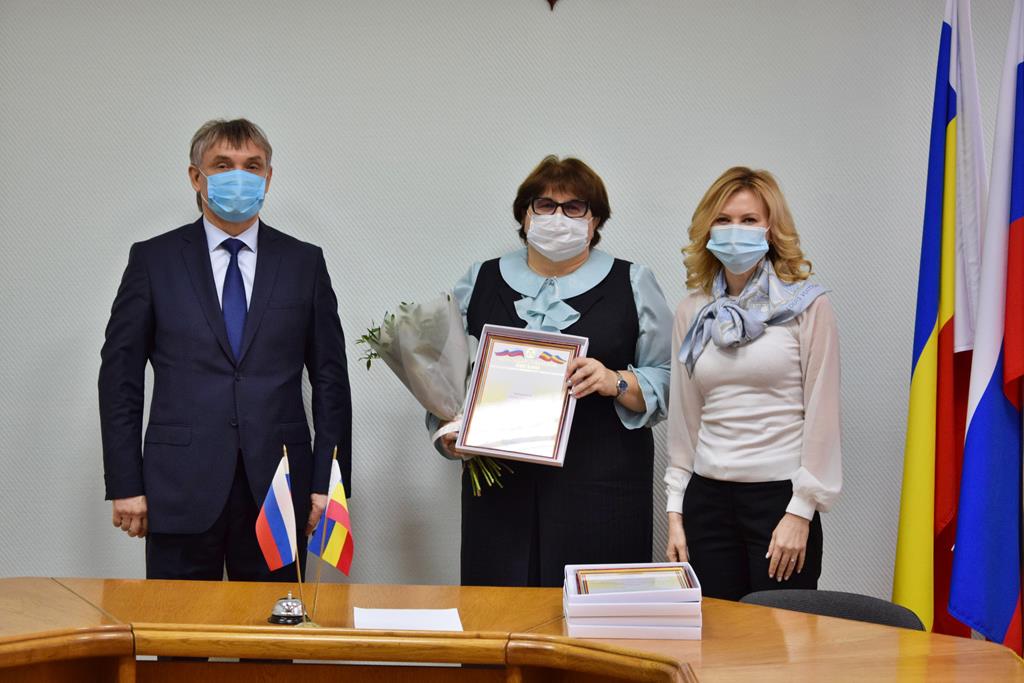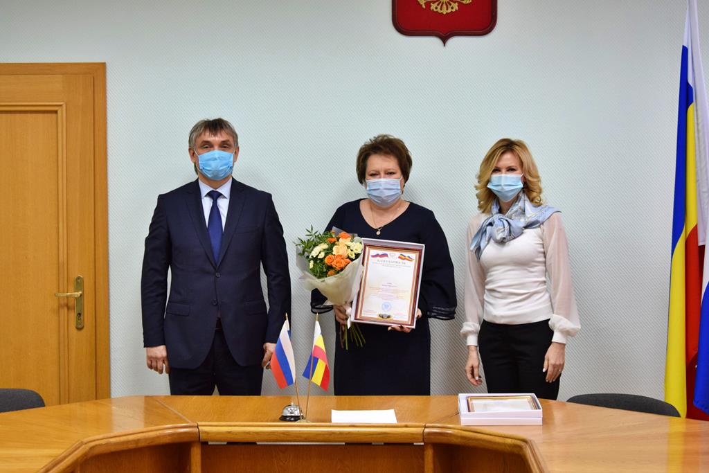 24 ноября председатель комитета Законодательного Собрания Ростовской области по взаимодействию с общественными объединениями, молодежной политике, физической культуре, спорту и туризму Е.П. Стенякина совместно с председателем городской Думы — главой города Шахты А.Г. Горцевским, вручила председателям УИК, благодарности Законодательного Собрания Ростовской области, за значительный вклад в формирование и реализацию социально-экономической политики, активное участие в общественно-политическом развитии Ростовской области.