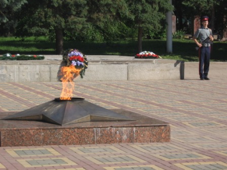 Митинг памяти и скорби завершился возложением цветов и венков к Братской могиле воинам Советской Армии, Вечному огню, памятникам шахтинских героев на аллее Славы.
