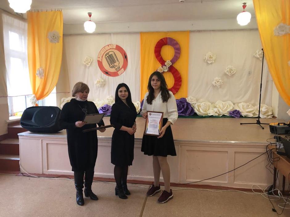 Помощник депутата по избирательному округу №2 Василия Юденко вручила Благодарственные письма депутата сотрудницам 12-ой и 15-ой школ -в связи с празднованием Международного женского дня. От имени депутата виновницам торжества были адресованы поздравления и теплые весенние пожелания. Школьники в этот день принимали награды от председателя Молодежного Парламента при городской Думе города Шахты Виолетты Богдановой. Она также поблагодарила учителей за достойное воспитание подрастающего поколения. Ученики, в свою очередь, порадовали педагогов и гостей праздничными концертами, посвященными 8 Марта.