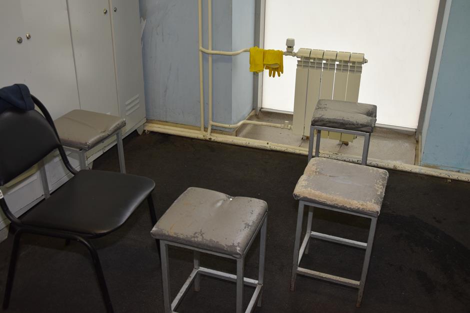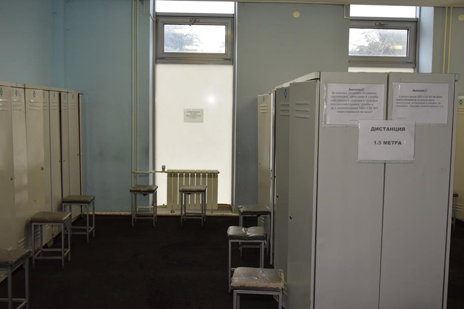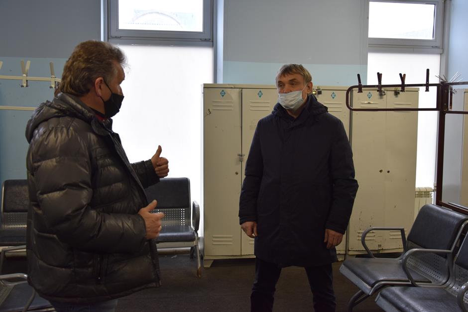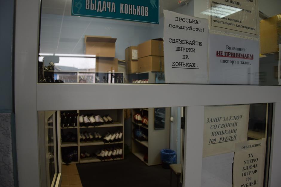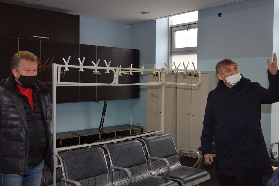 В ходе осмотра объекта депутаты сразу обратили внимание на явно видимое отсутствие косметического ремонта с момента сдачи объекта в эксплуатацию: потрескавшуюся напольную плитку в фойе, неудовлетворительное состояние шкафов для хранения личных вещей, грязный ковролин, залитый потолок, открытые электрические провода в раздевалках для хоккеистов и посетителей массового катания.