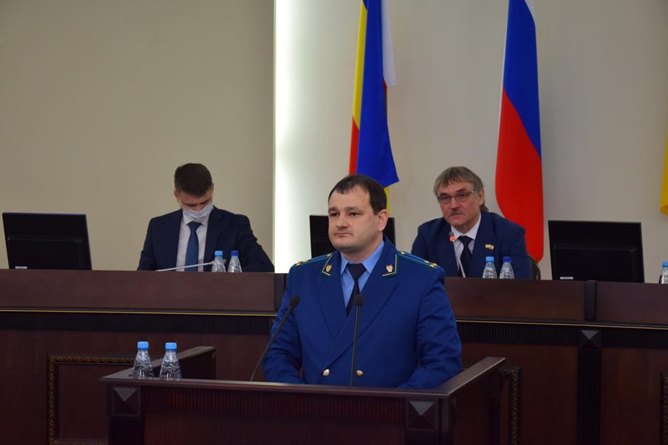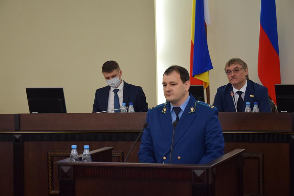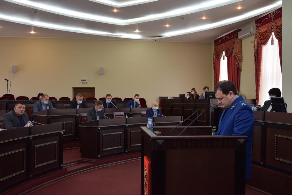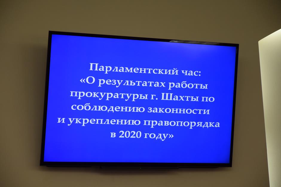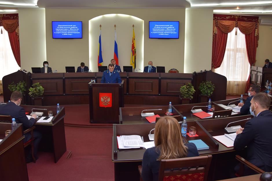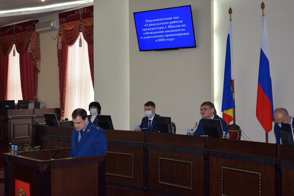 В рамках «парламентского часа» прокурор Владимир Болдырев выступил с докладом о результатах работы прокуратуры г. Шахты по соблюдению законности и укреплению правопорядка в 2020 году.