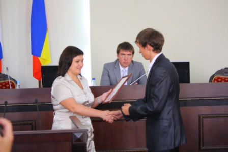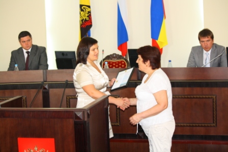 Свою работу депутаты начали с приятной миссии: с награждения Почётной грамотой городской Думы города Шахты Татьяны Константиновны Власюк. Под аплодисменты председатель Думы И.А.Жукова вручила цветы Татьяне Константиновне – достойному человеку, замечательному педагогу и грамотному руководителю.