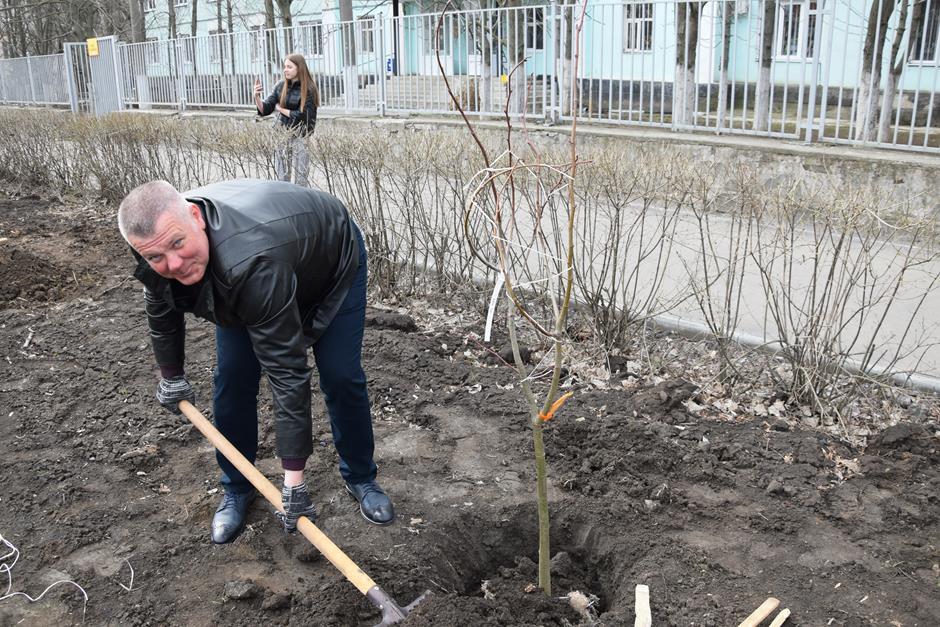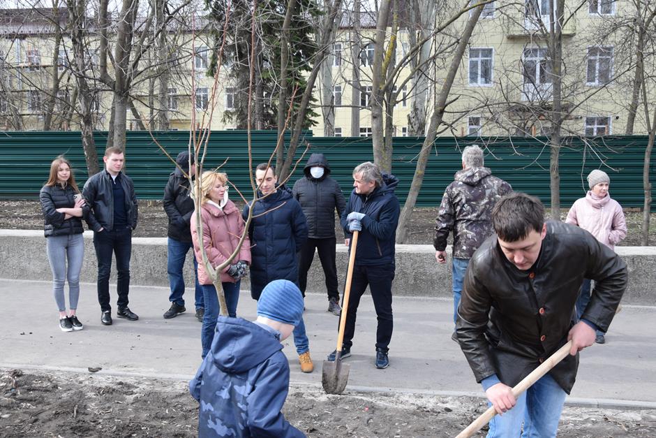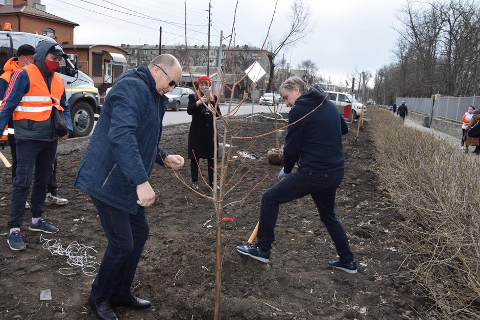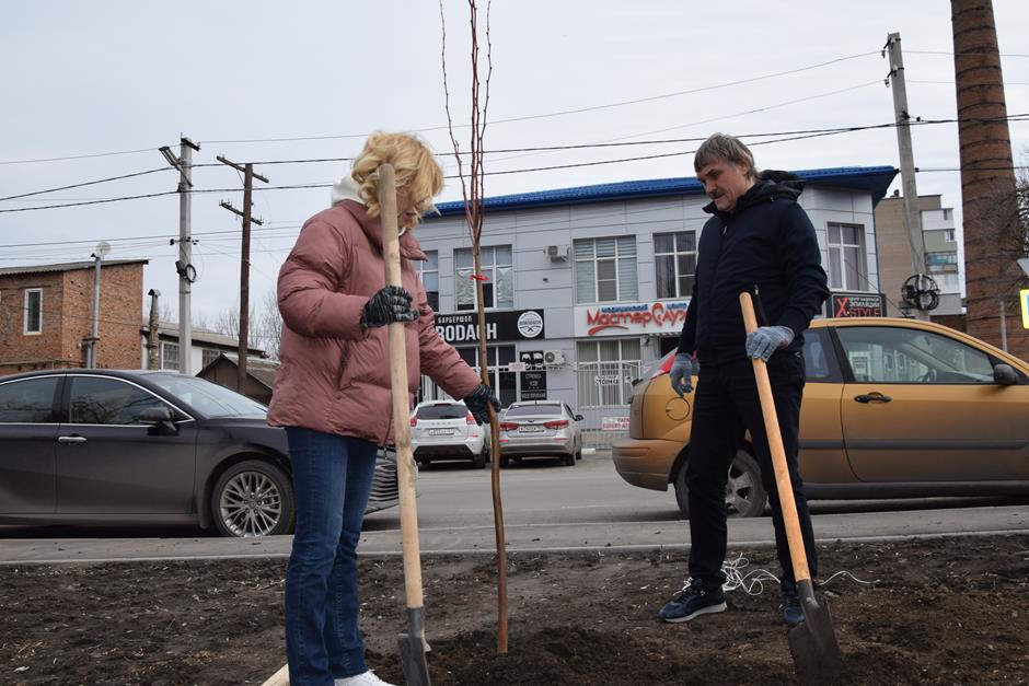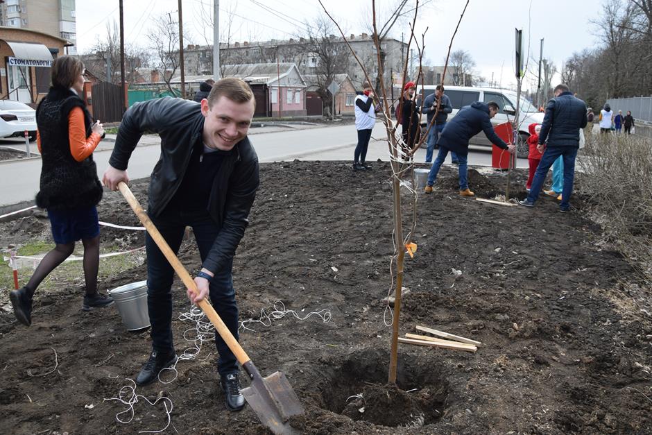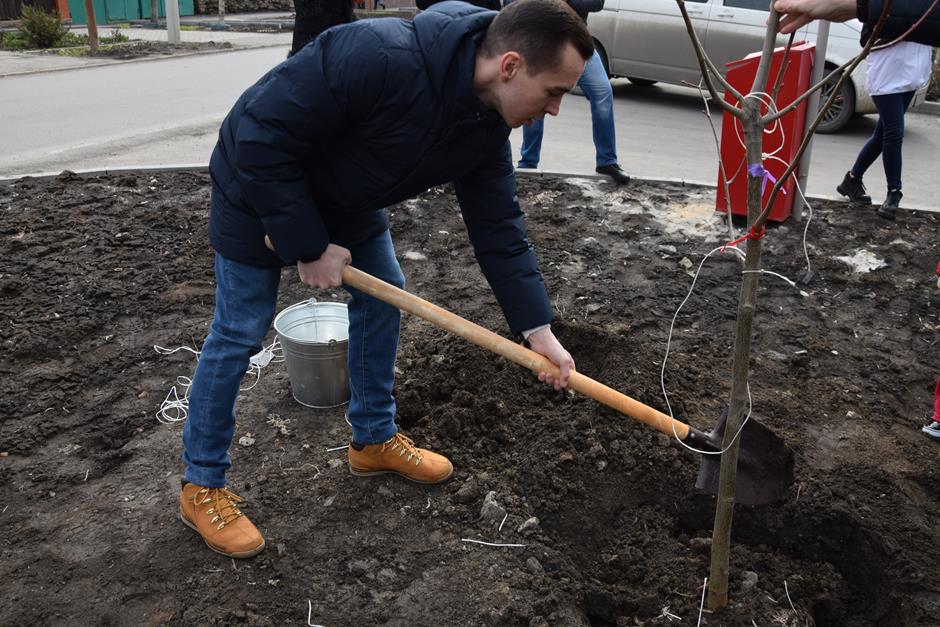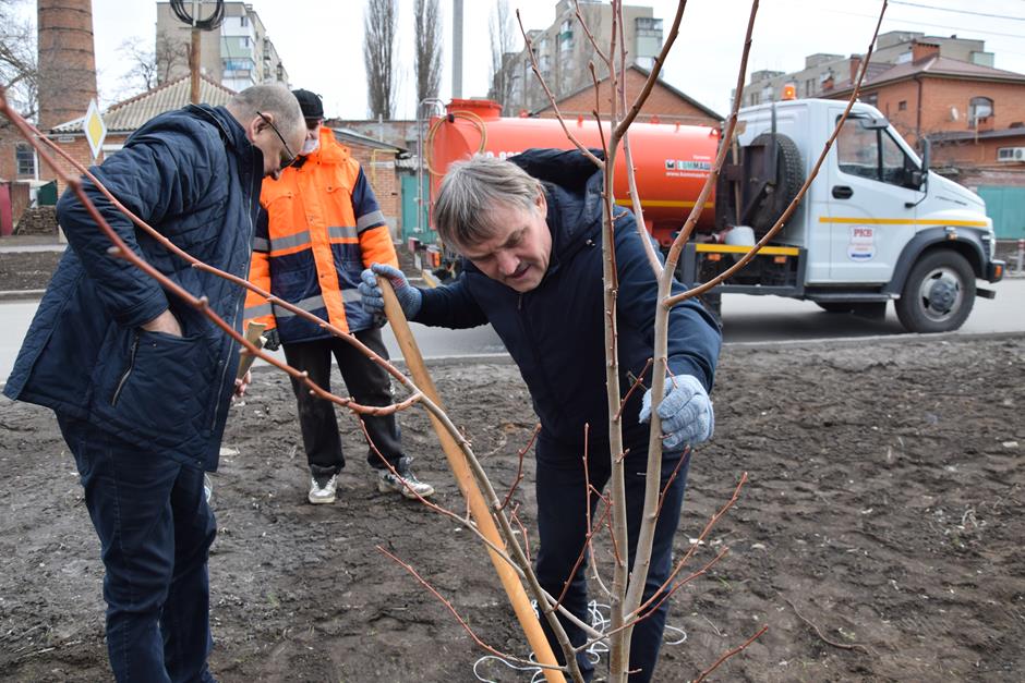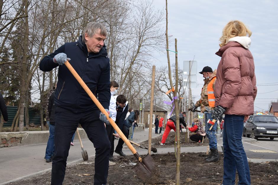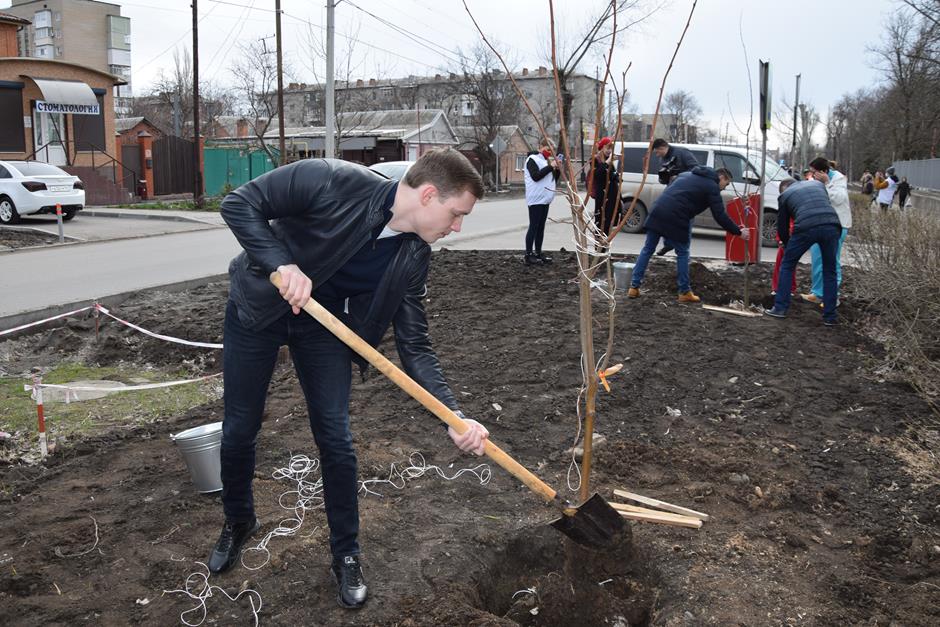 Председатель городской Думы — глава города Шахты Андрей Горцевской принял участие в весеннем дне древонасаждения