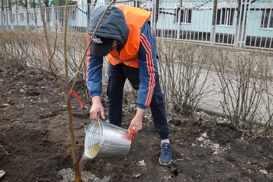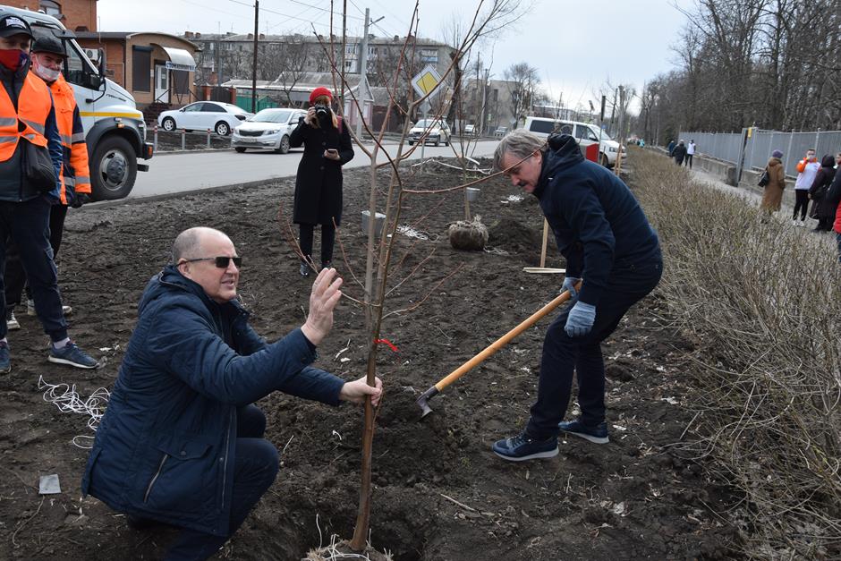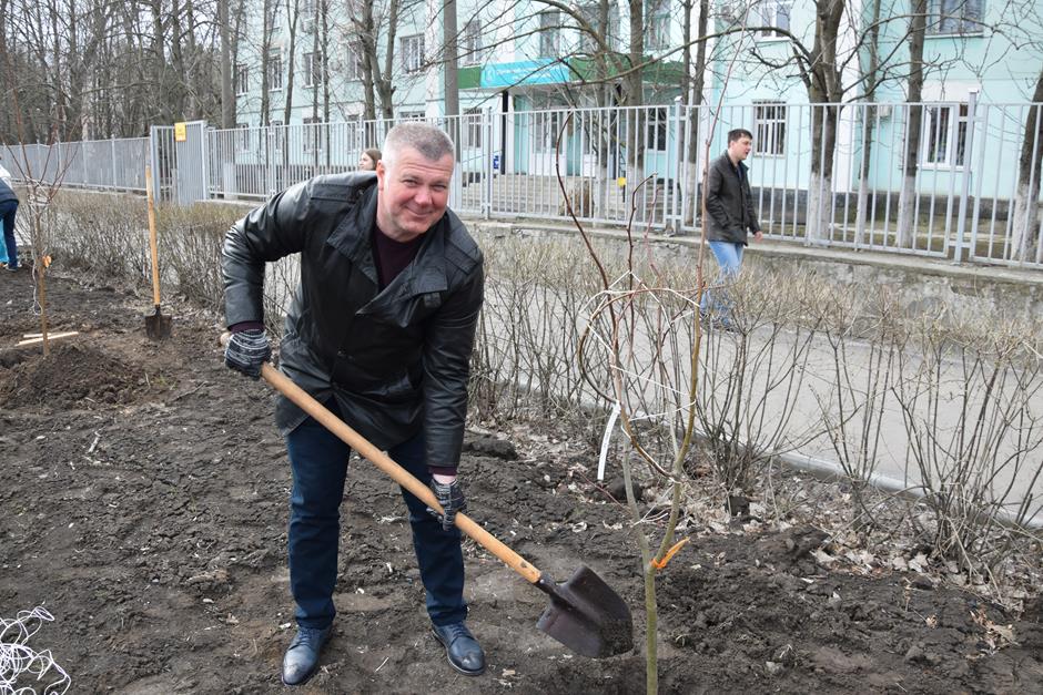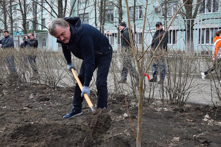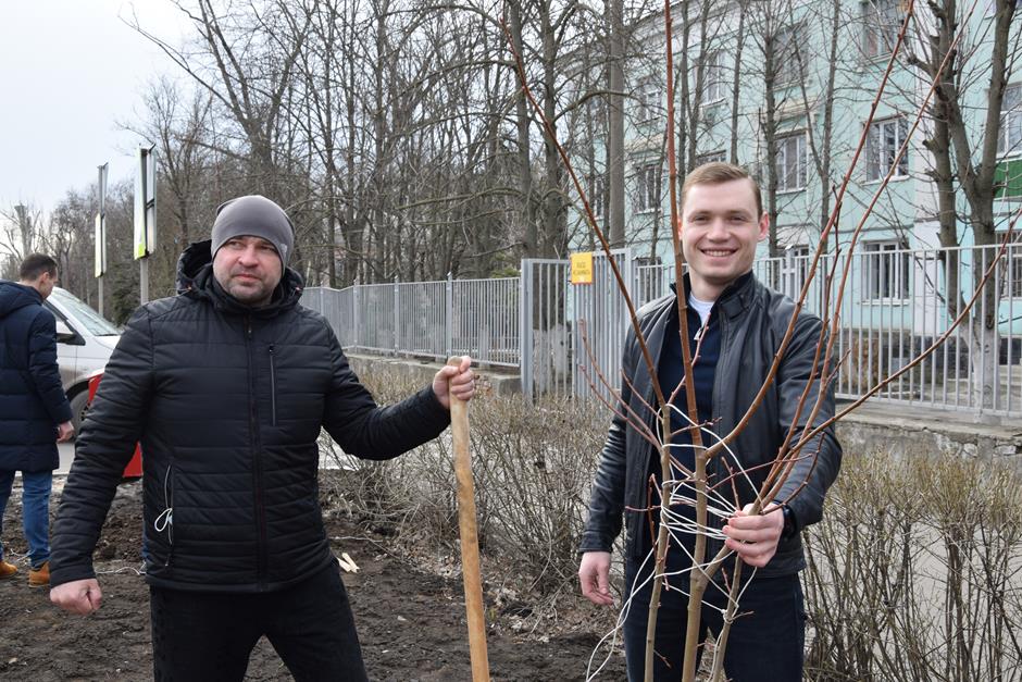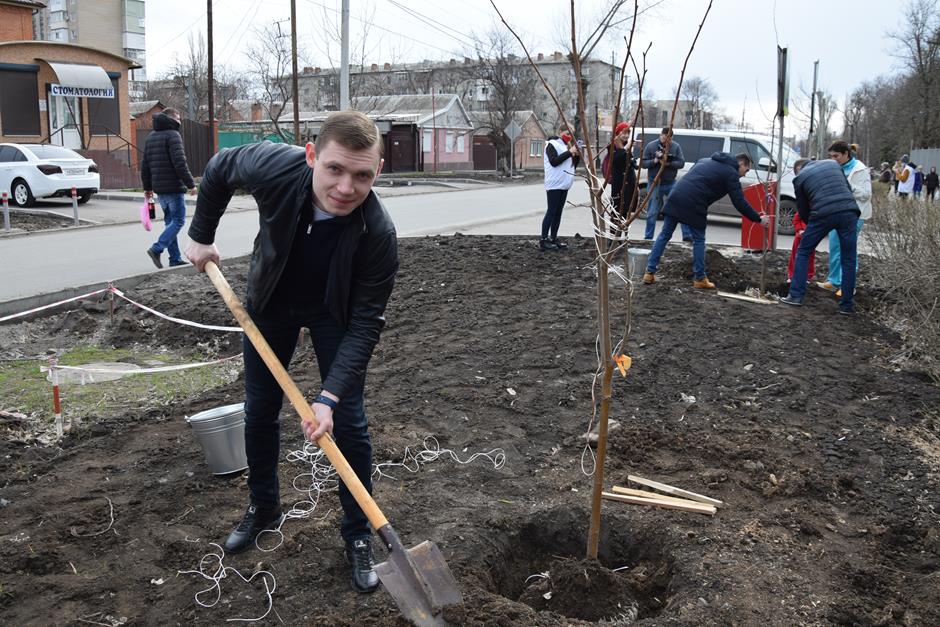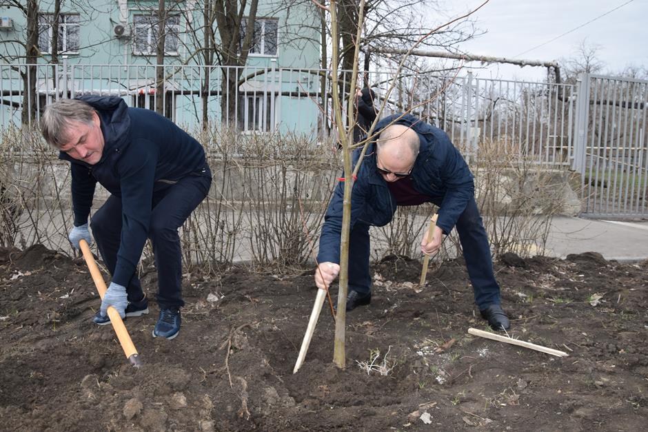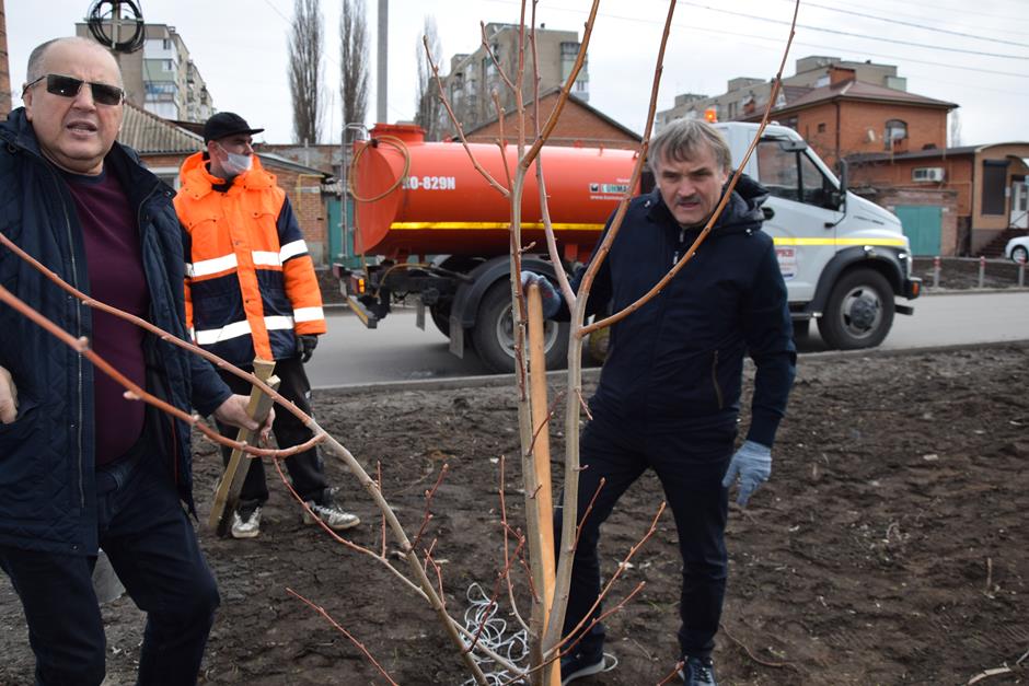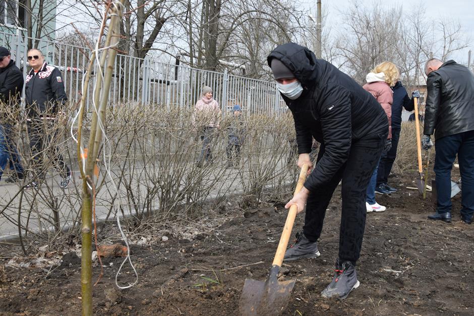 Председатель городской Думы — глава города Шахты Андрей Горцевской принял участие в весеннем дне древонасаждения