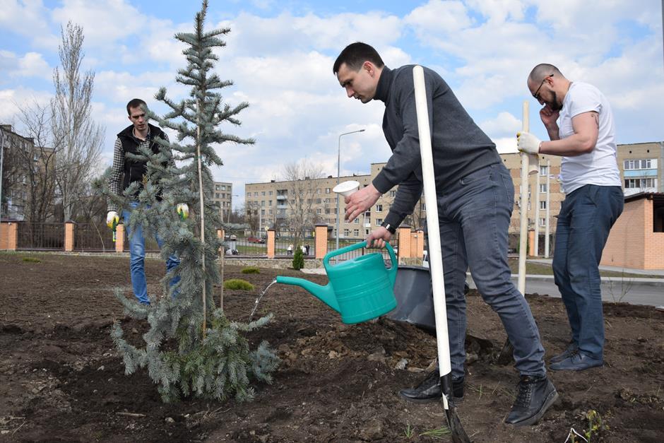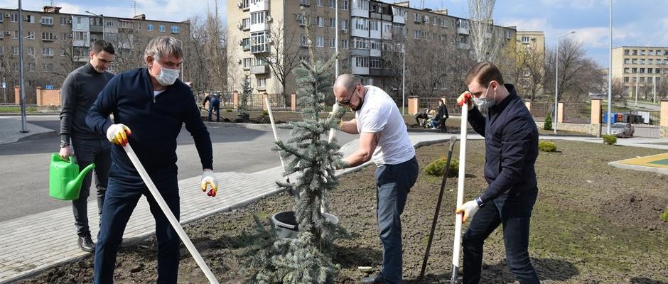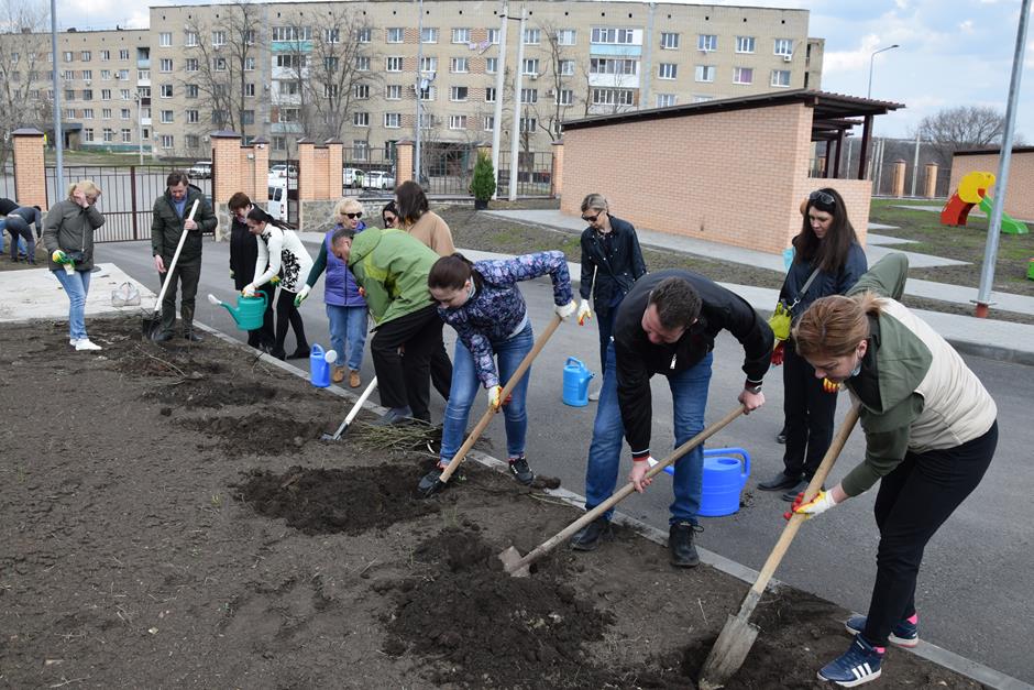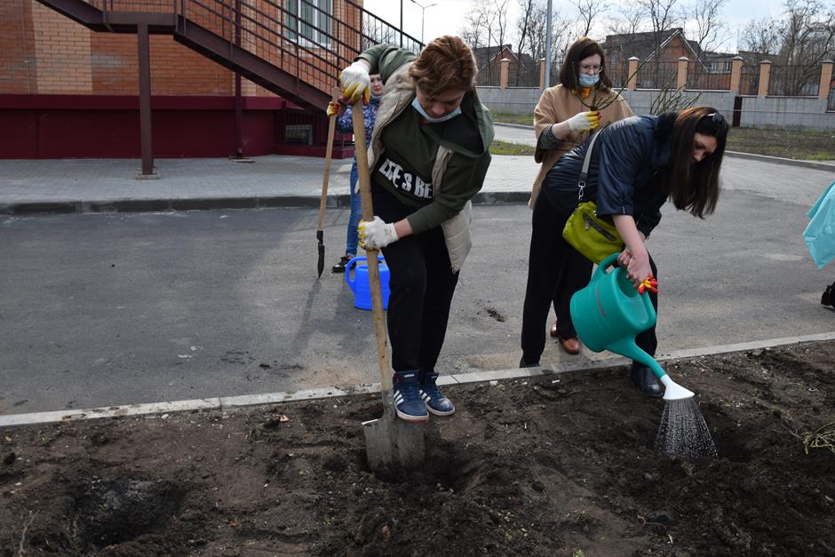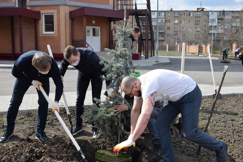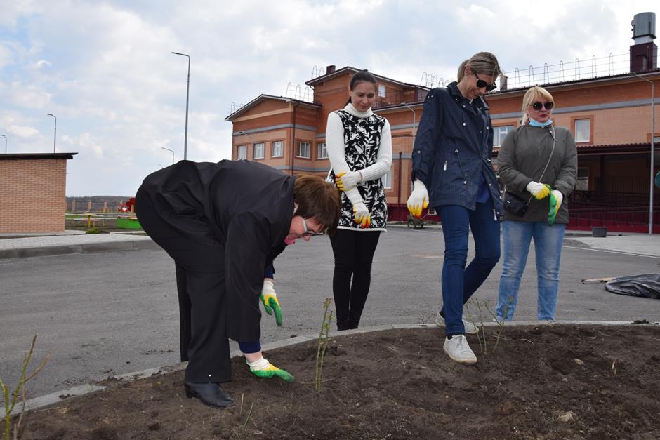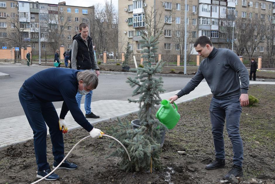 100 роз, туи, ели, березы и рябины высадили в поселке ХБК — на избирательном округе председателя городской Думы – главы города Шахты Андрея Горцевского